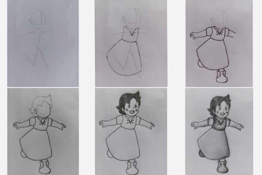 Heidi: Heidi es un animé dirigido a un público infantil en el cual la protagonista es una niña huérfana que vive en los alpes suizos con su abuelo, en dicha serie resaltan los valores humanos y se enseña a valorar y amar a la naturaleza. A continuación les mostraré el paso a paso de este personaje, el cual considero puede ser un poco más complejo (comparado con los anteriores).