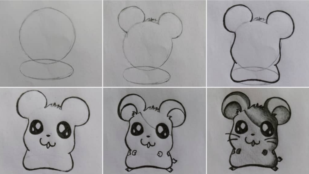 Hamtaro: En esta serie infantil el personaje principal tiene por nombre Hamtaro y es un hámster, el cual constantemente vive muchas aventuras con sus amigos cada vez que su dueña lo descuida. Voy a iniciar con el ejemplo de este personaje ya que es bastante sencillo de dibujar, por lo tanto les mostraré y explicaré brevemente el paso a paso.