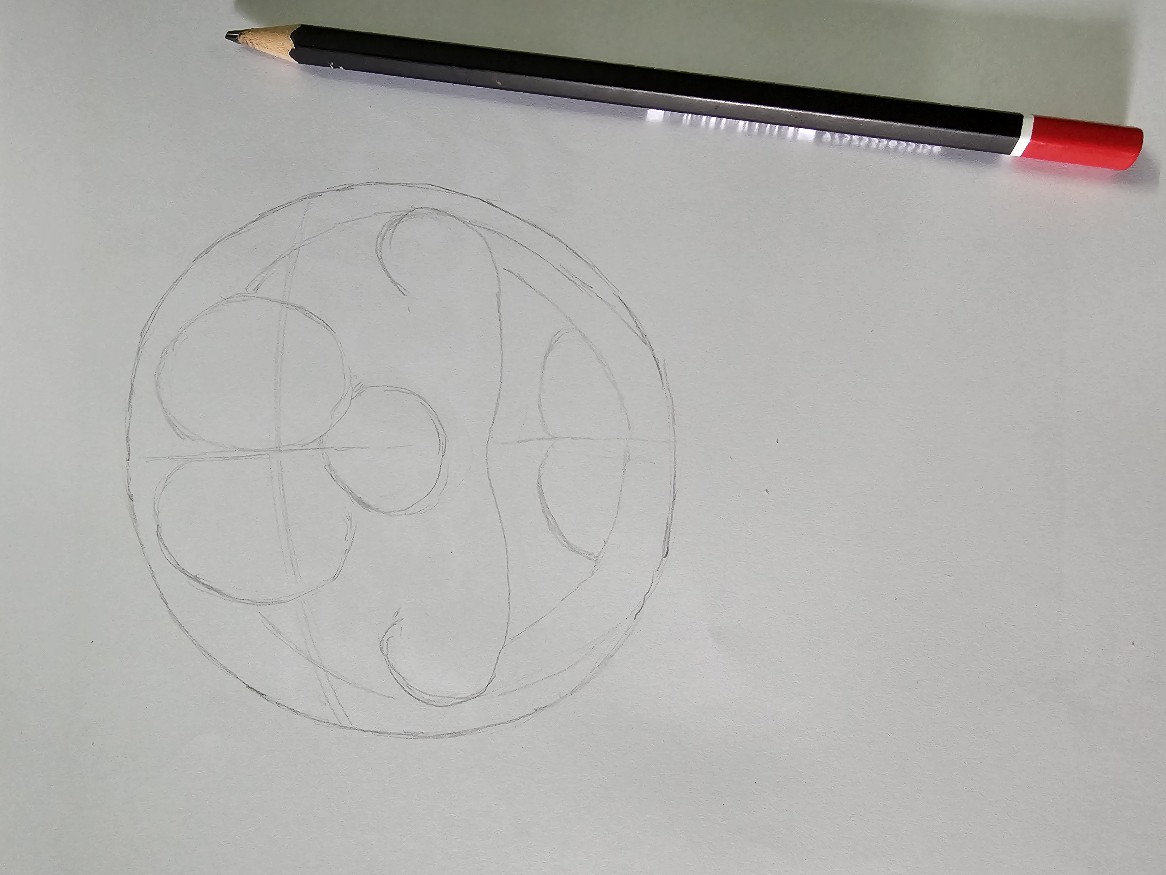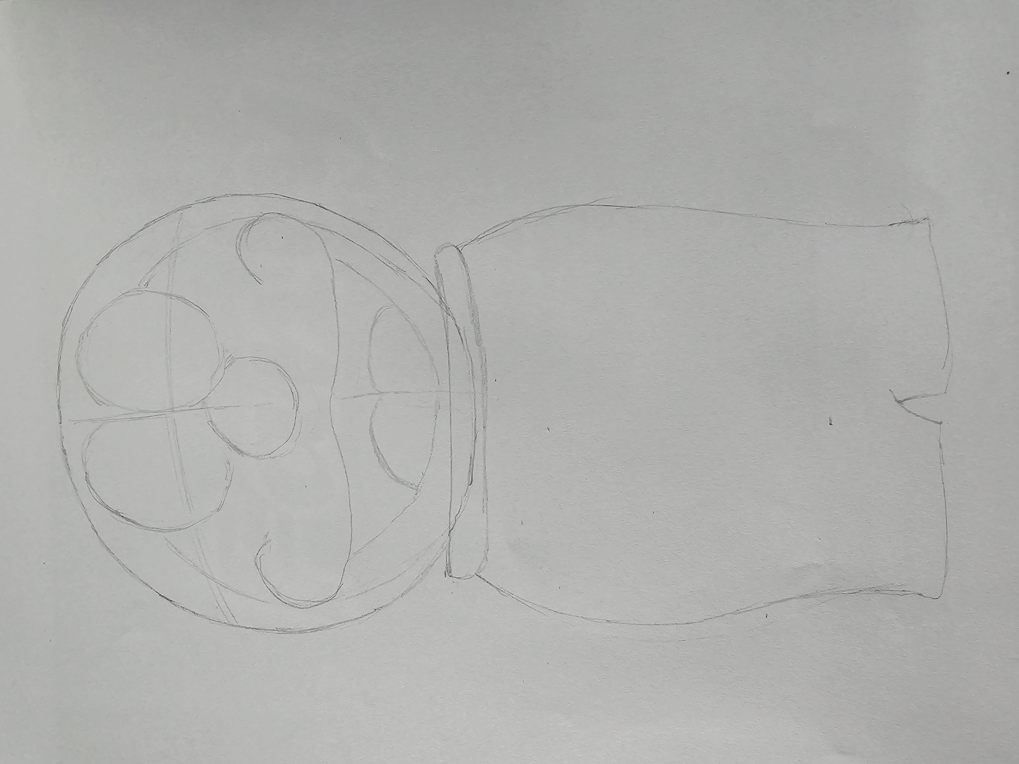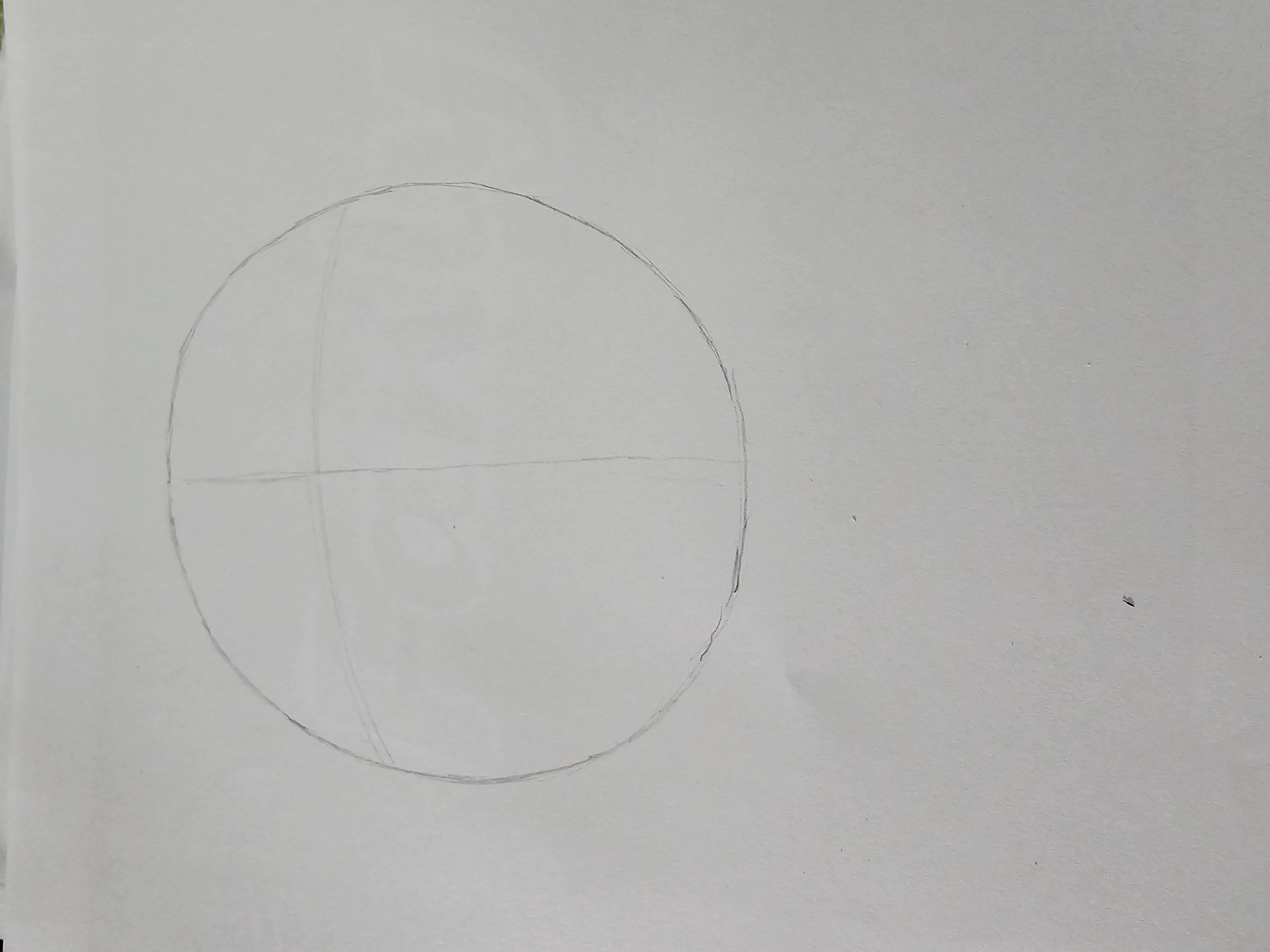 - First, I will create a simple sketch of the Doraemon character as per the challenge requirements. Which will help me capture its shape and proportions. For this first I will draw a spherical circle. In between I will draw two lines vertically and horizontally.