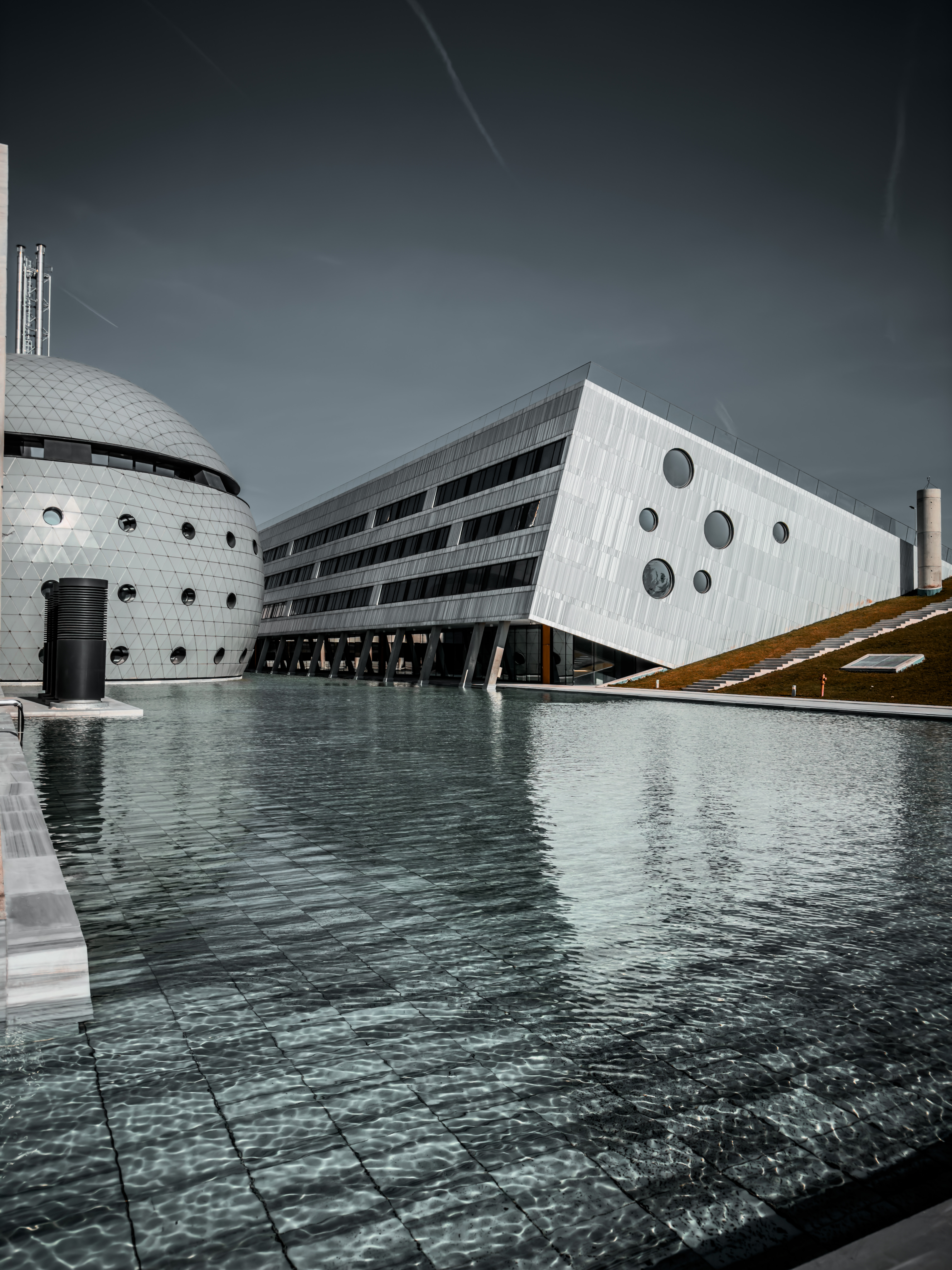 Binanın dış cephesinde yer alan cam paneller, gün ışığının binanın içine daha fazla girmesini sağlar ve doğal ışıklandırma ile enerji tasarrufuna katkıda bulunur. Ayrıca, binanın çevresinde yer alan açık alanlar, Senfoni Orkestrası'nın açık hava konserleri için de kullanılabilecek bir atmosfer oluşturmaktadır.