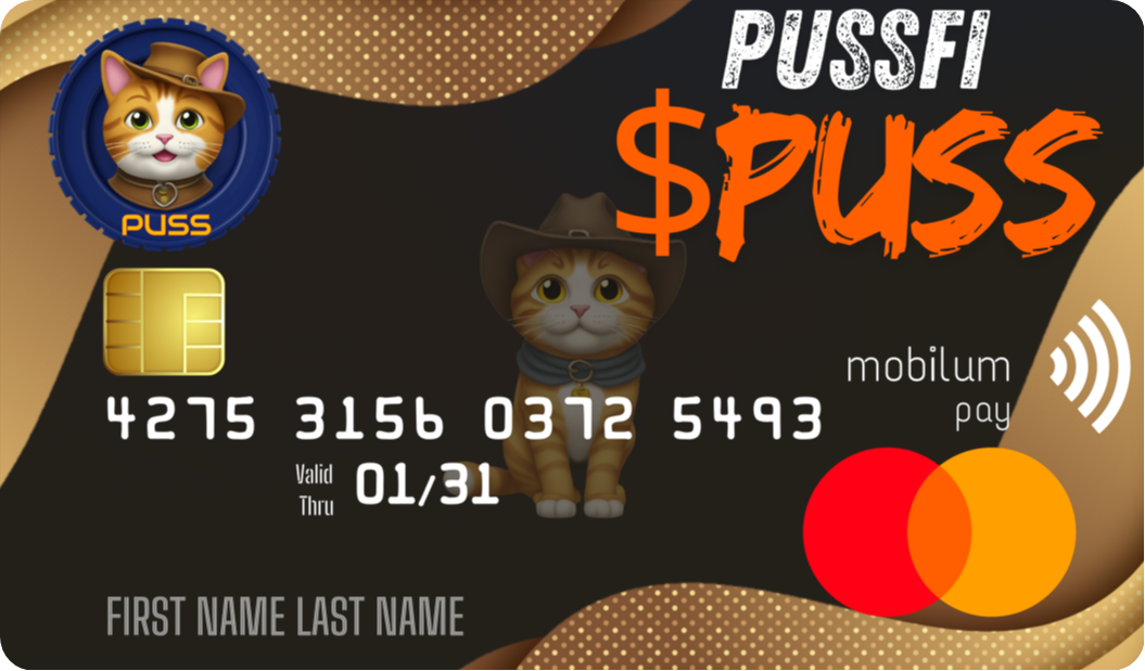 চুক্তি সম্পূর্ণ হলে এবং কমপ্লায়েন্স সম্পূর্ণ করার পরে আমরা নিজেদের প্রজেক্টের ডেবিট কার্ড বাজারে ছাড়তে পারবো । এই ডেবিট কার্ডের নাম হবে PussFi Debit Card । কার্ড কোম্পানি Mastercard । প্রোভাইডার Mobilum ।
