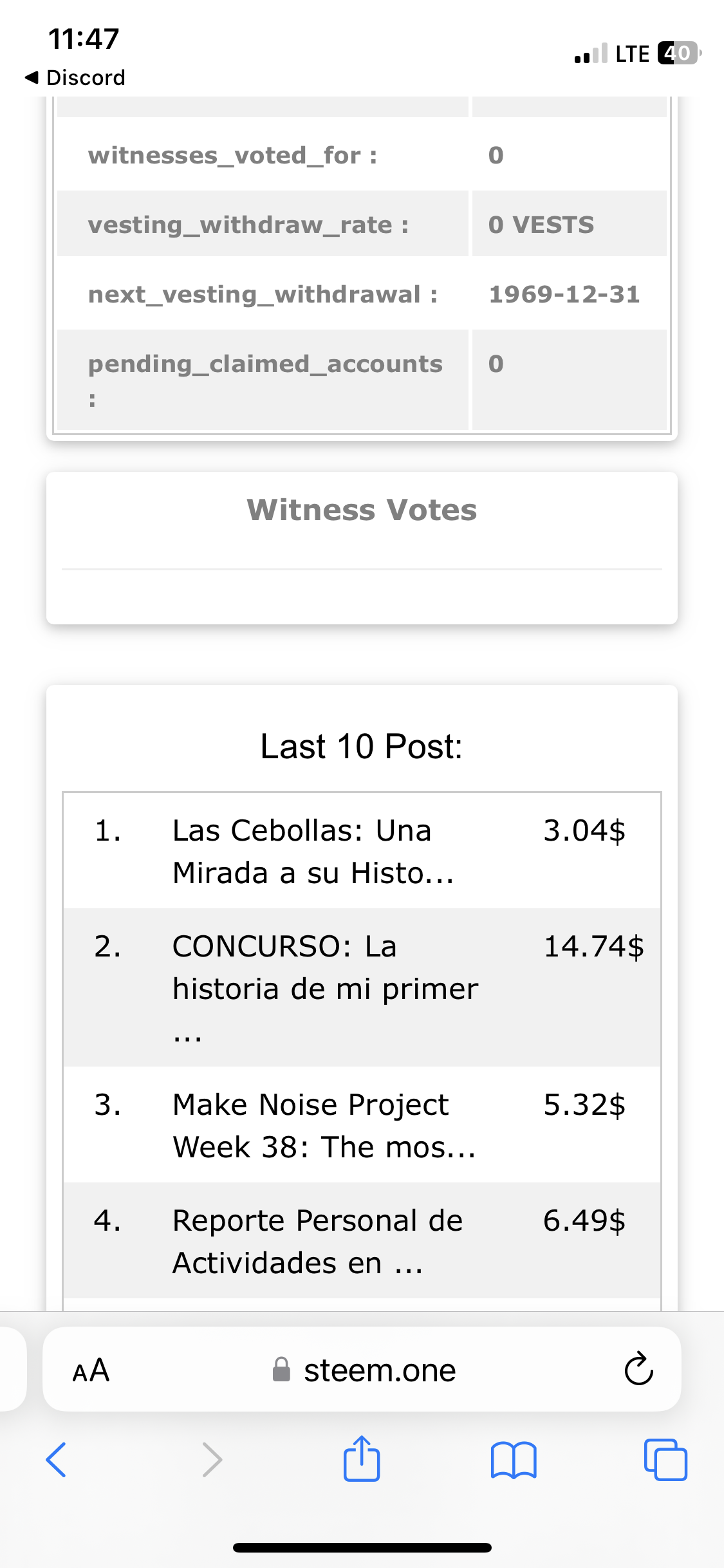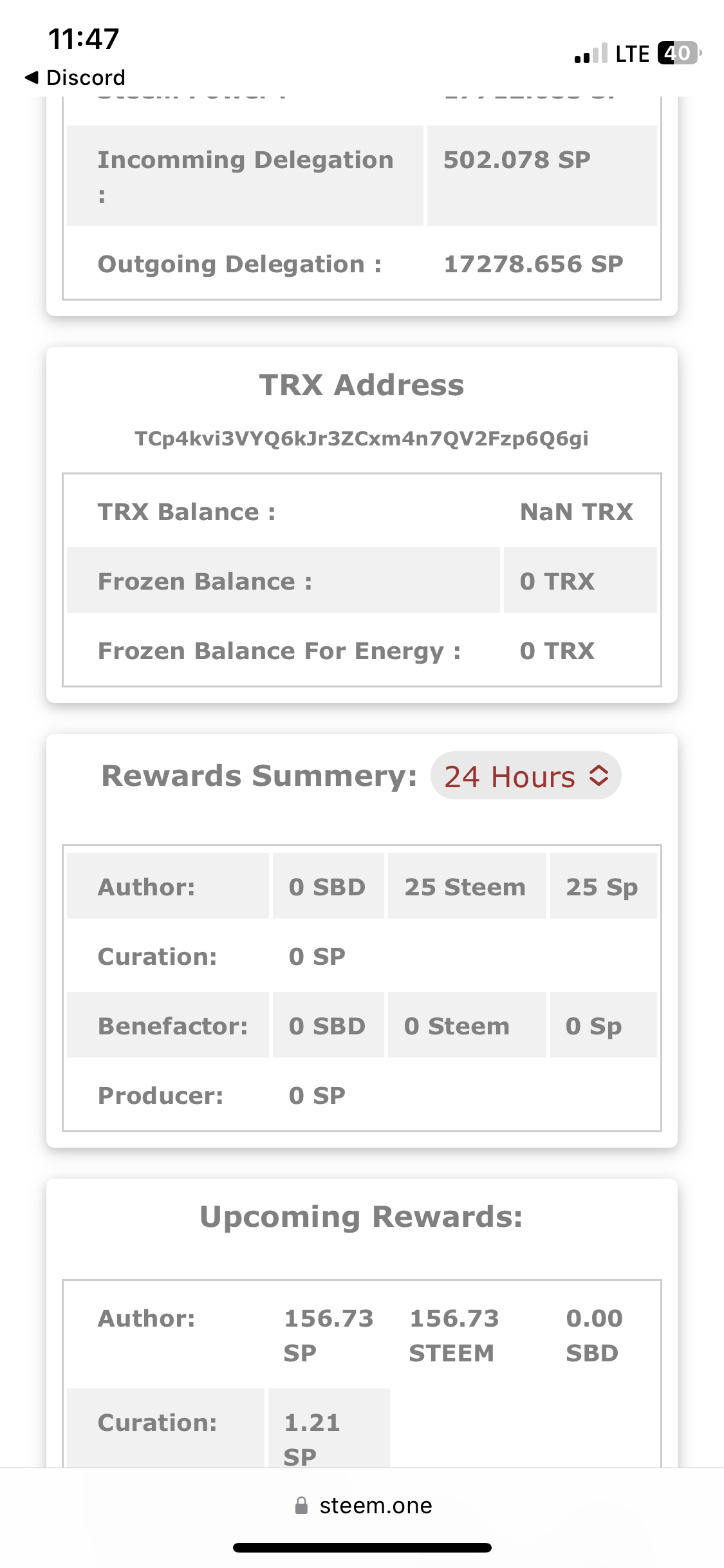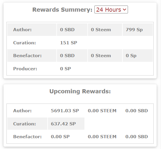 You can also obtain your reward summary data as well as other profile information such as your witness vote, your last 10 posts, your last 10 comments, and more. The most recent transaction and the five most recent incoming and outgoing delegations.