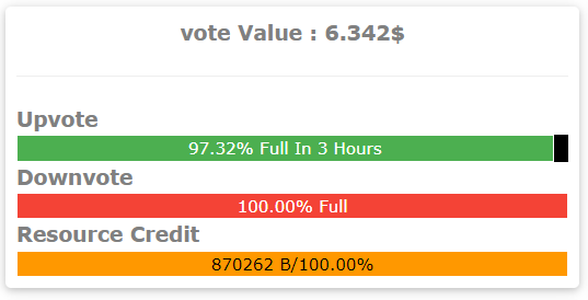 Next, you can see your current vote value. Upvote, downvote percentage, and resource credits.