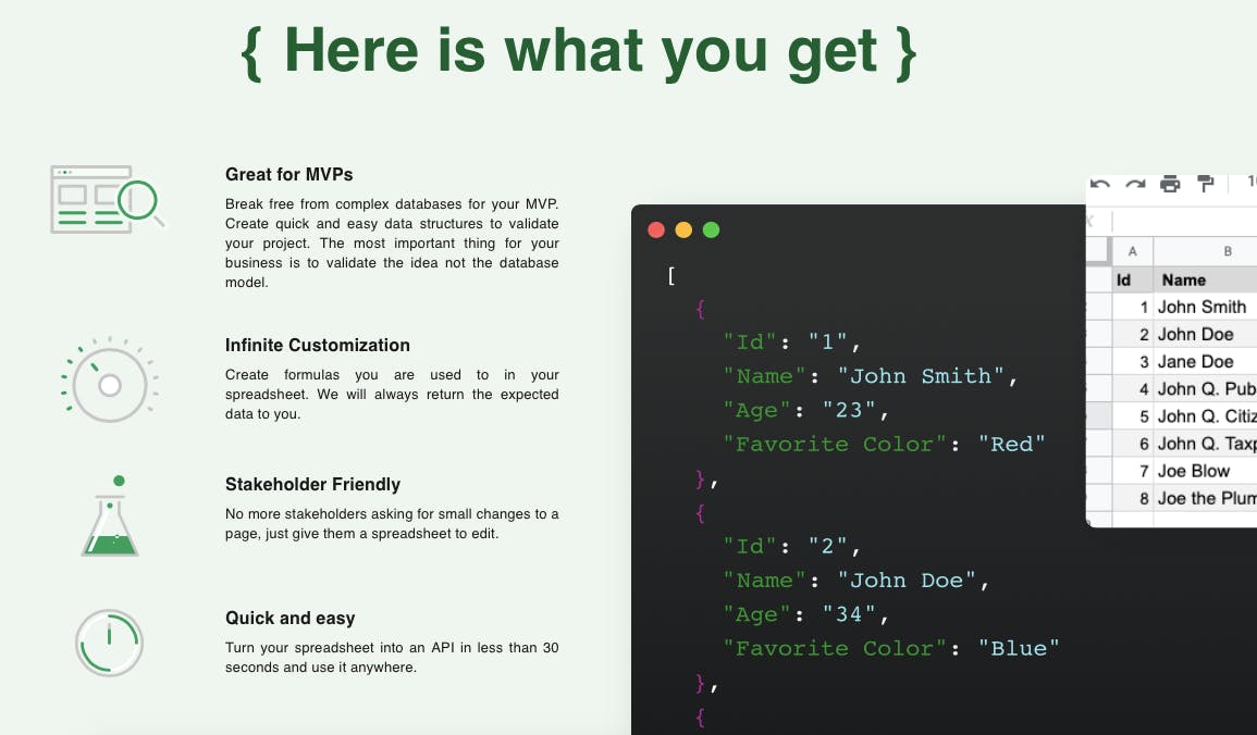 Turn your google spreadsheets into JSON Database API