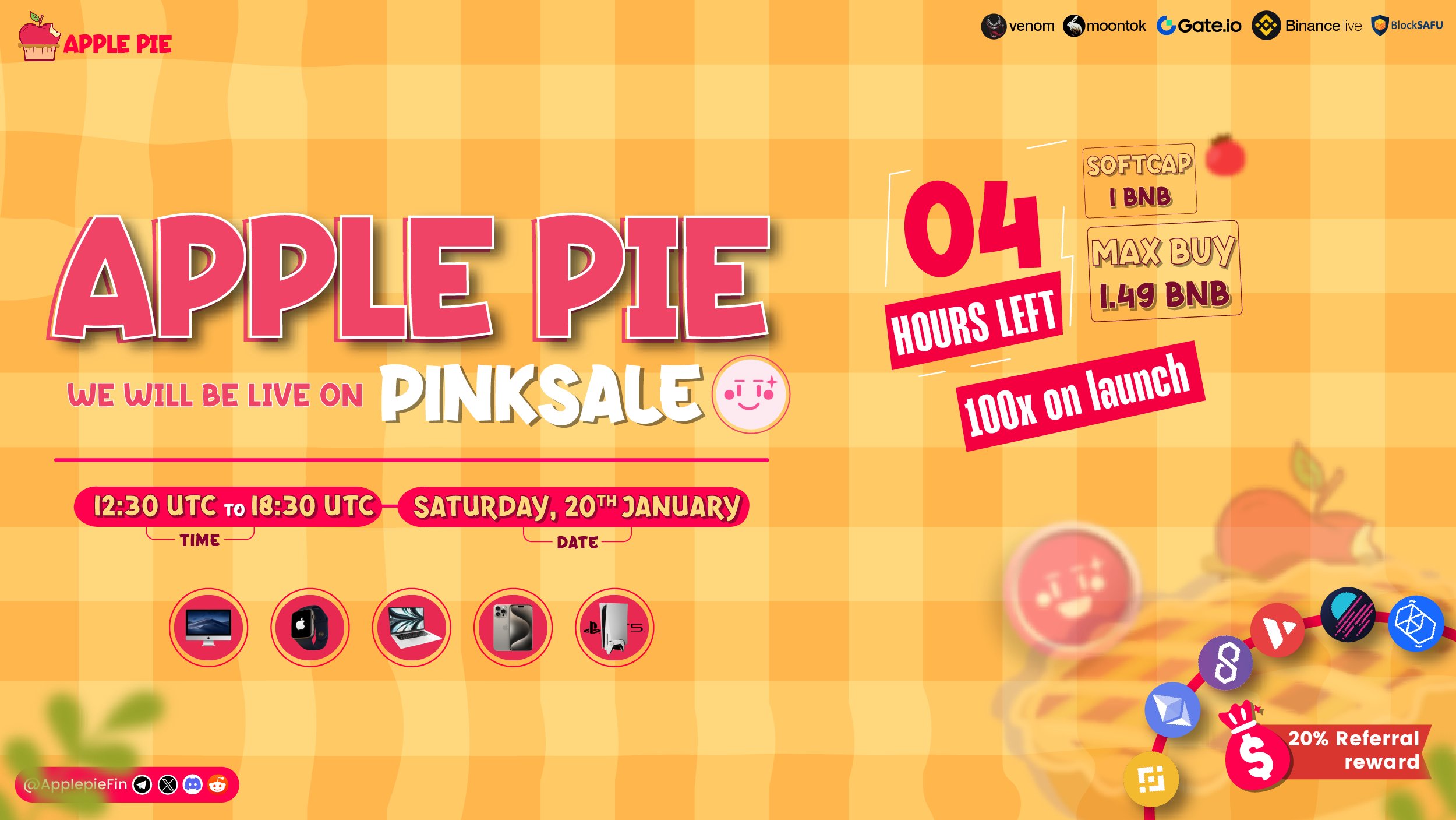 #ApplePie #PIE #100xreturns #BNB #pancakeswap #trade #autoyield #earnreward #staking #pinksale