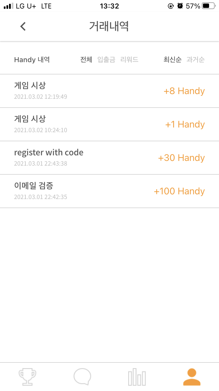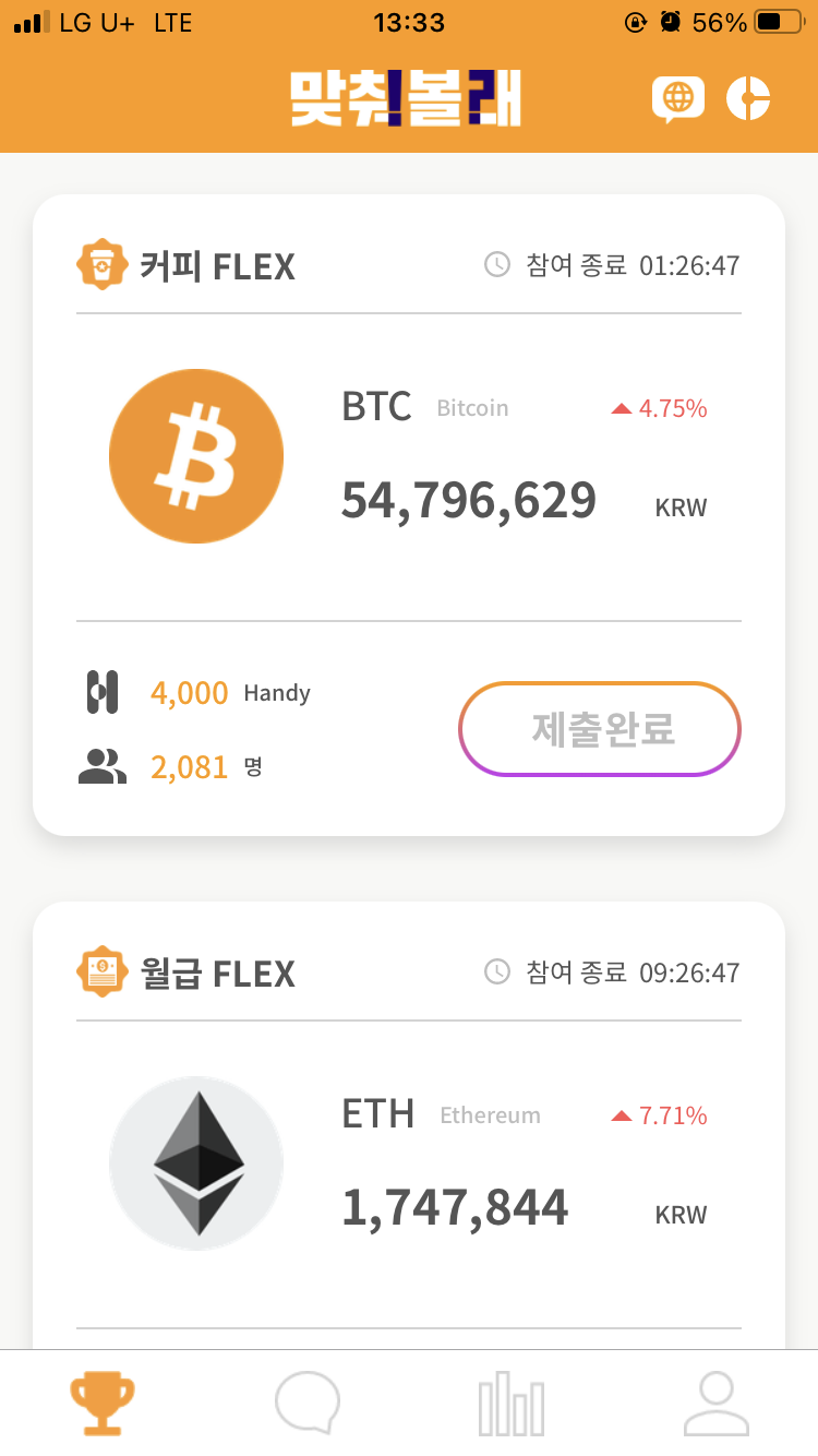 코인 앱테크도 있네요. 오늘도 맞춰볼까?tcy4 (25)in #apptech • 5 years ago (edited)과거에 종종 여러 앱테크를 했었는데 (출석체크, 퀴즈 맞추기 등등) 이젠 다 정리하고 아무것도 안하다가 엊그제 하나 추천받아 시작했습니다. 홀짝 하듯이 오를지 내릴지 고르면 되네요 벌써 쏠쏠합니다 ㅋ 출금 수수료가 좀 많긴 하지만! 꾸준히 모으면 되지 않을까 싶습니다. 추천인코드 입력하시고 같이 보너스 받아요^^ 339X9T #coin #handy #start