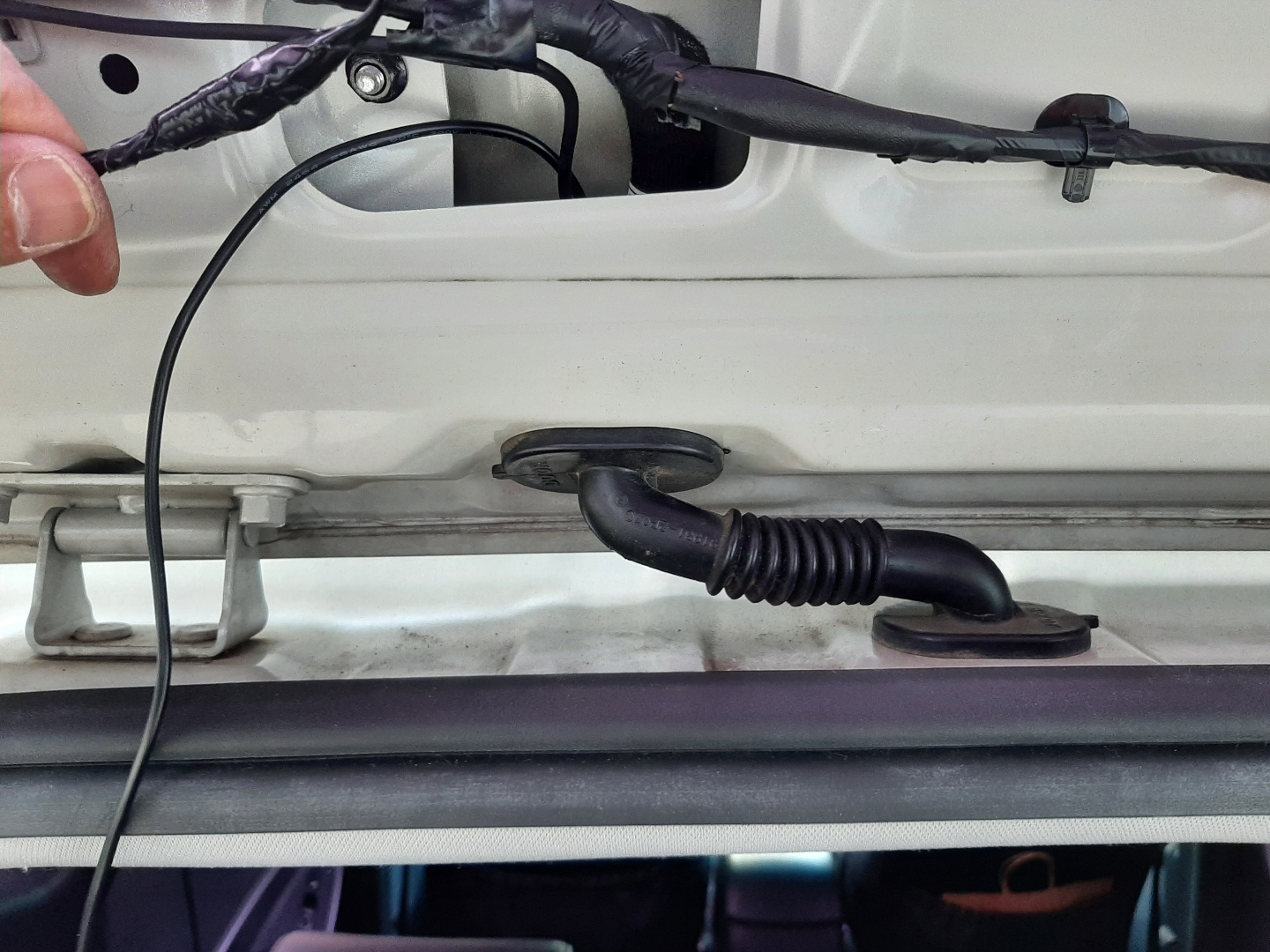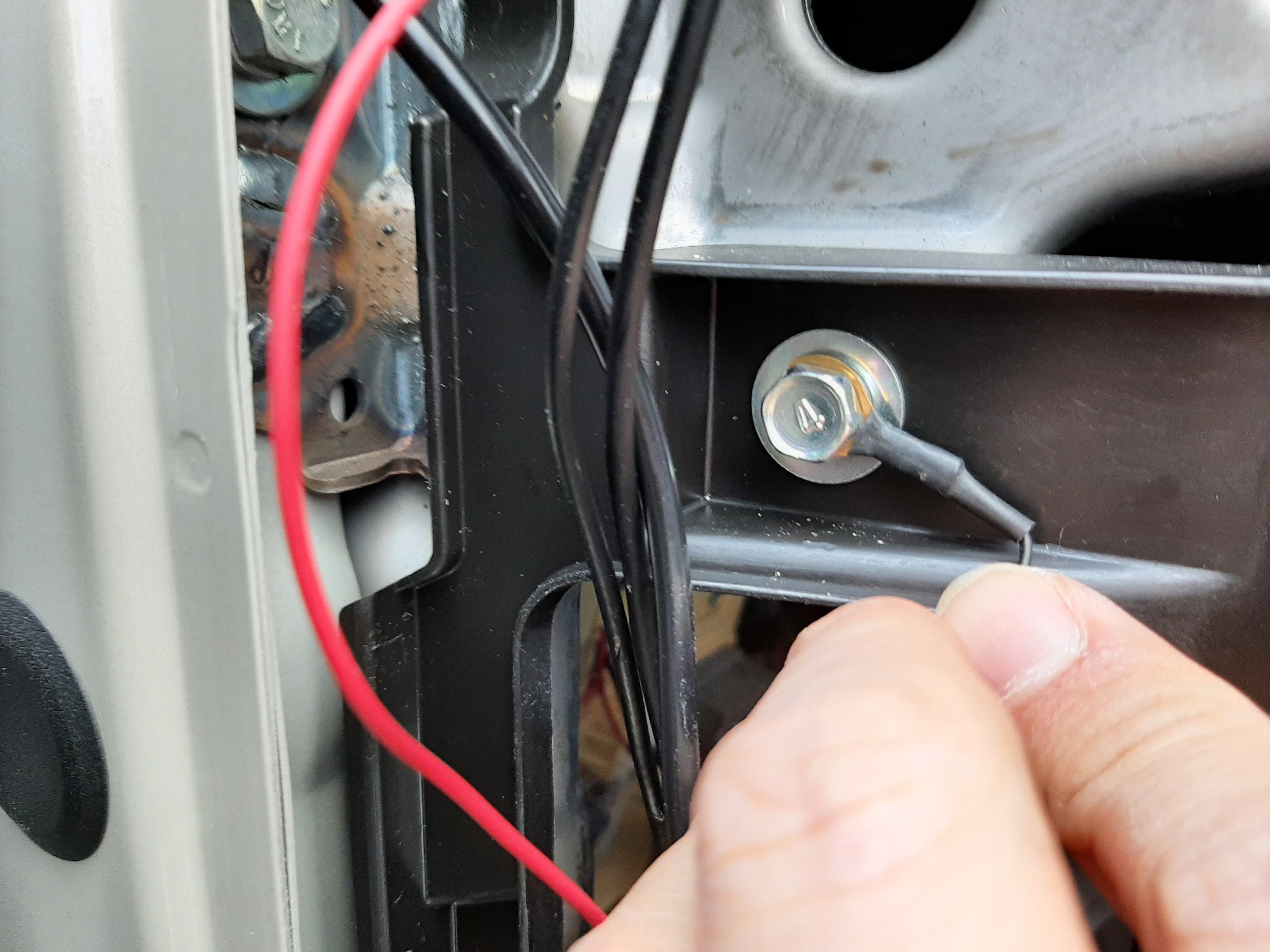 차량 본체에 접지잡고 상시, ACC전원 각각 맞는 spare 퓨즈에 연결해주고, 차문 고무 패킹 떼어내고 방음 테이프 바르면서 쑥쑥 밀고 갑니다. 이제 마지막 자바라 고무판 통과라는 고난도 코스인데 전 긴 케이블 타이에 단자 연결해서 당겨주었습니다.
