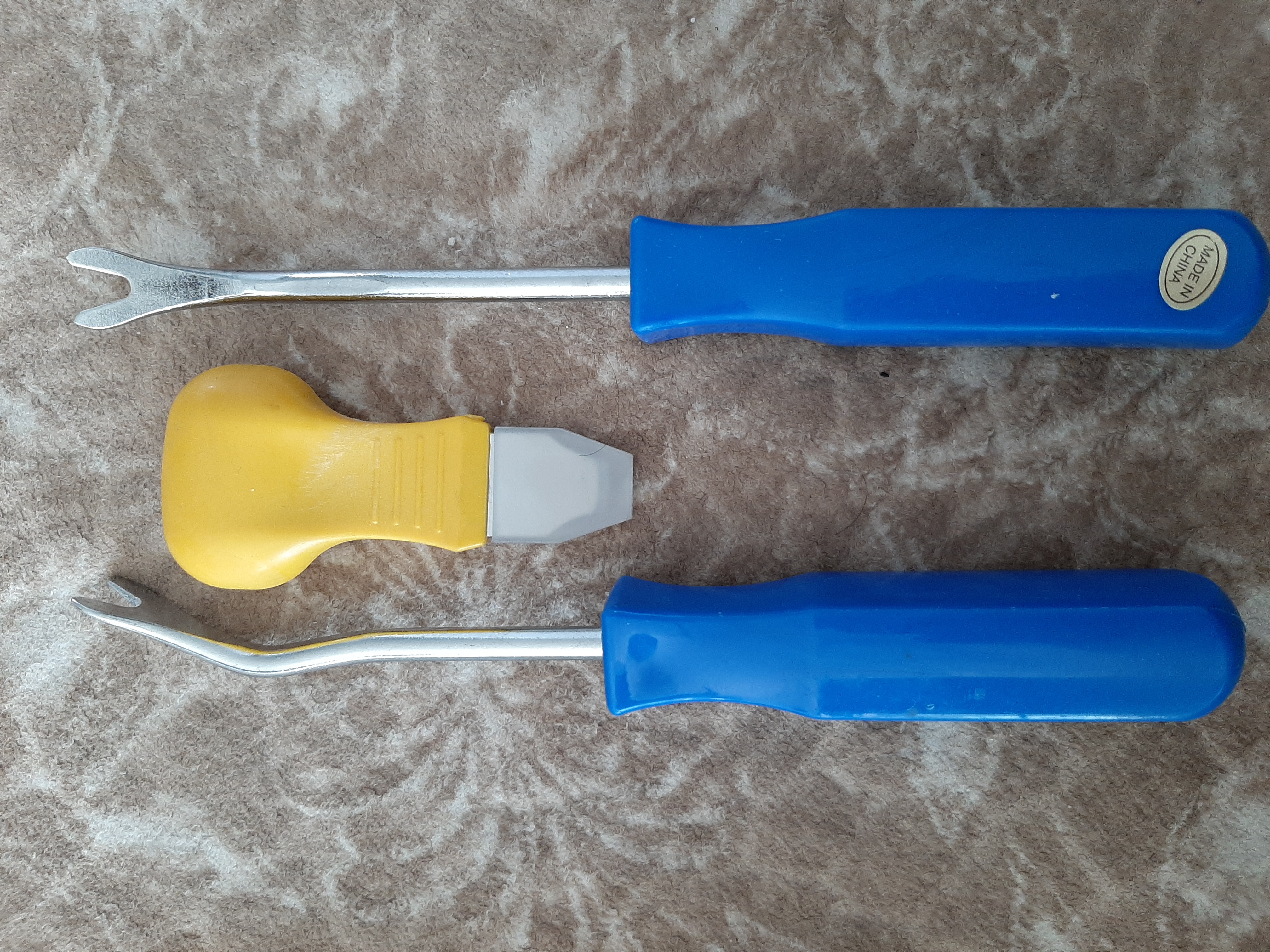 제일 먼저 툴의 준비, 그 중에도 퓨즈로 전원 In/Out부위를 정확히 알기위한 검사램프가 꼭 필요합니다. 퓨즈마다 전원 들어오는 쪽이 다를 수 있어서입니다. 다음은 A 필러를 제거하기 위한 오리발? 2개. 전 이놈 떼어내는데 30분 넘게 걸렸습니다.