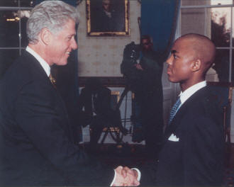 في عمر الخامسة عشر حصل على منحة دراسية كتعويض السنين التي قضاها بعيدا عن المدرسة وقد استقبل من طرف الرئيس الأمريكي بنفسه برفقة الكونغرس كما حصل على العديد من العضويات الشرفية.