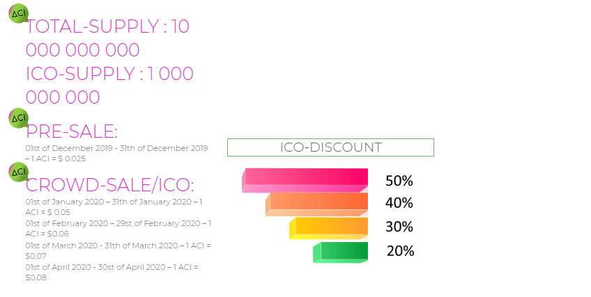 In conjunction with a fast growing community and a variety of activities, the ACI Coin will quickly establish and grow in value.