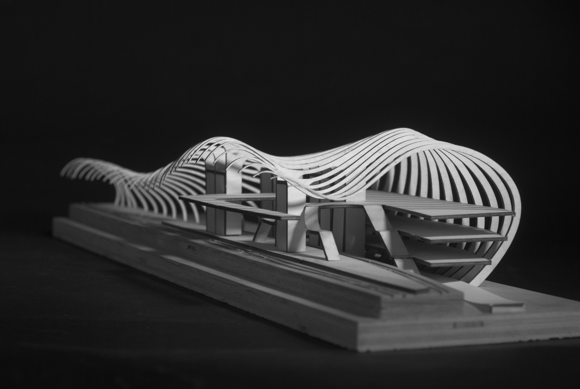 The station was designed using Grasshopper, a software that applies coding to 3D geometry. The flexibility of Grasshopper allowed me to modify the form, while keeping the same concept as I developed multiple iterations.