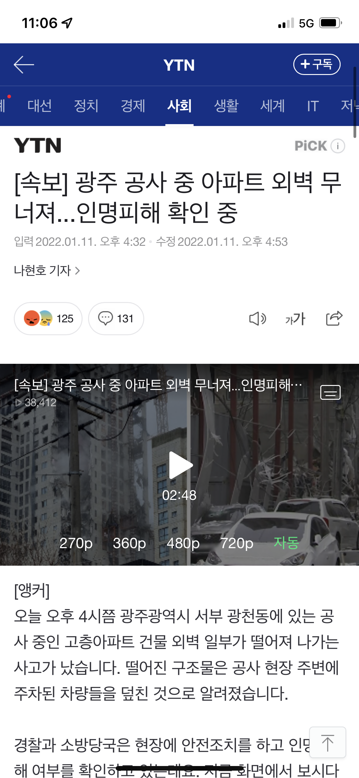 아시는 분들은 다들 아시겠지만 .. 광주에 한 건설 회사에서 공사를 하던 중 붕괴하는 사고가 일어났어요 ㅠㅠ