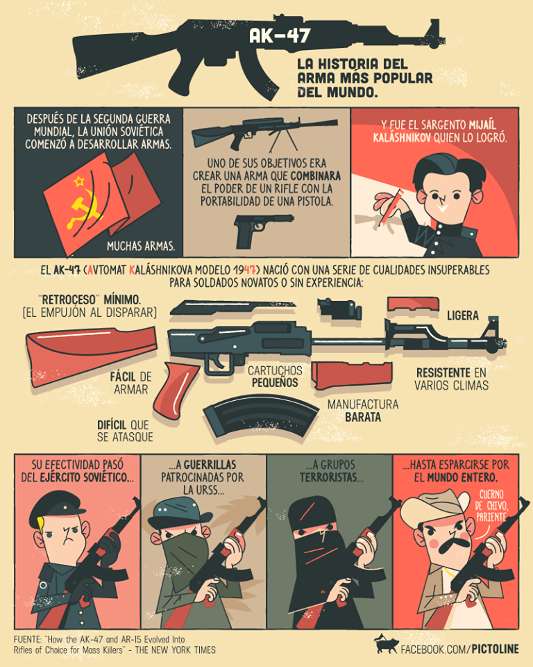 El Avtomat Kalashnikova modelo 1947 o más conocido por el acrónimo AK-47 es un fusil de asalto soviético, de calibre 7,62 mm, diseñado por Mijaíl Kaláshnikov, combatiente ruso durante la Segunda Guerra Mundial. Fue el fusil oficial de la Unión Soviética entre 1951 y 1978.