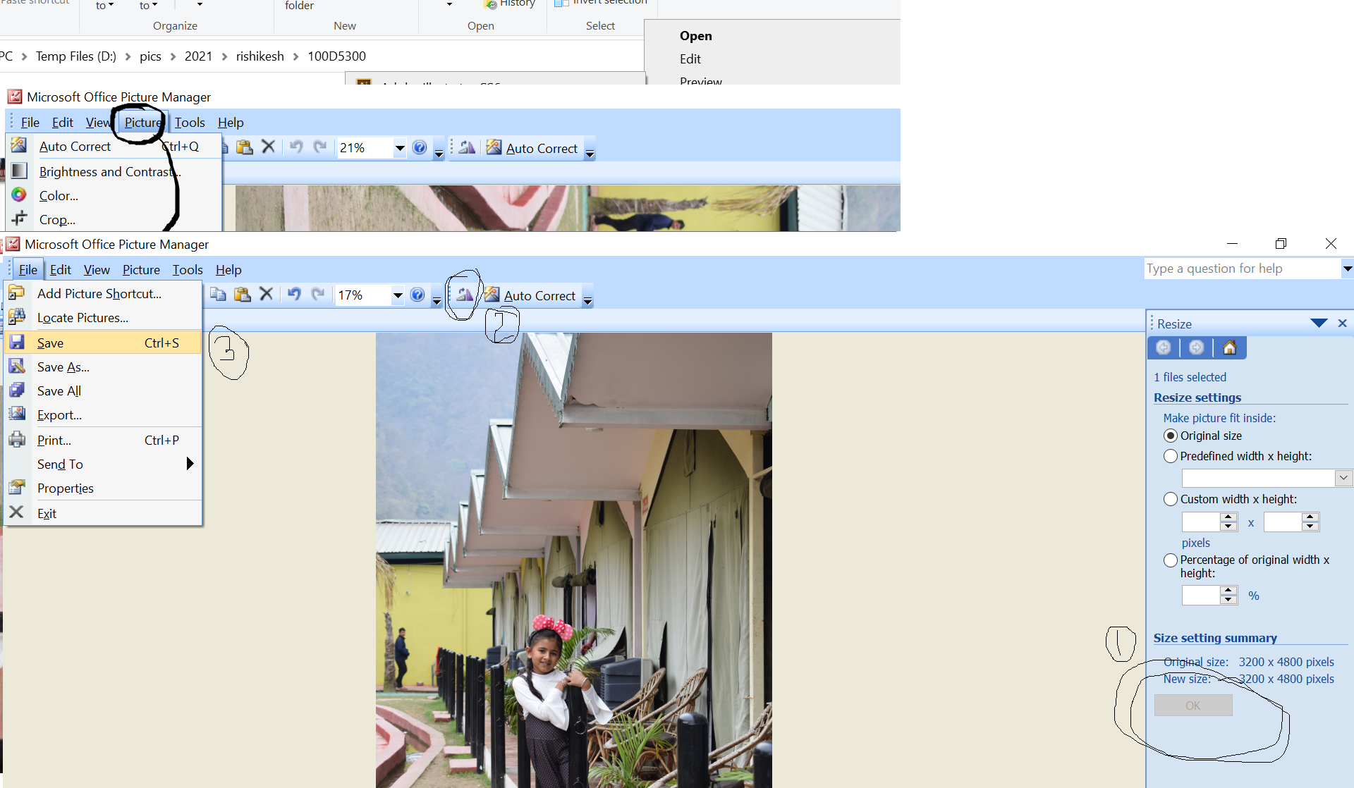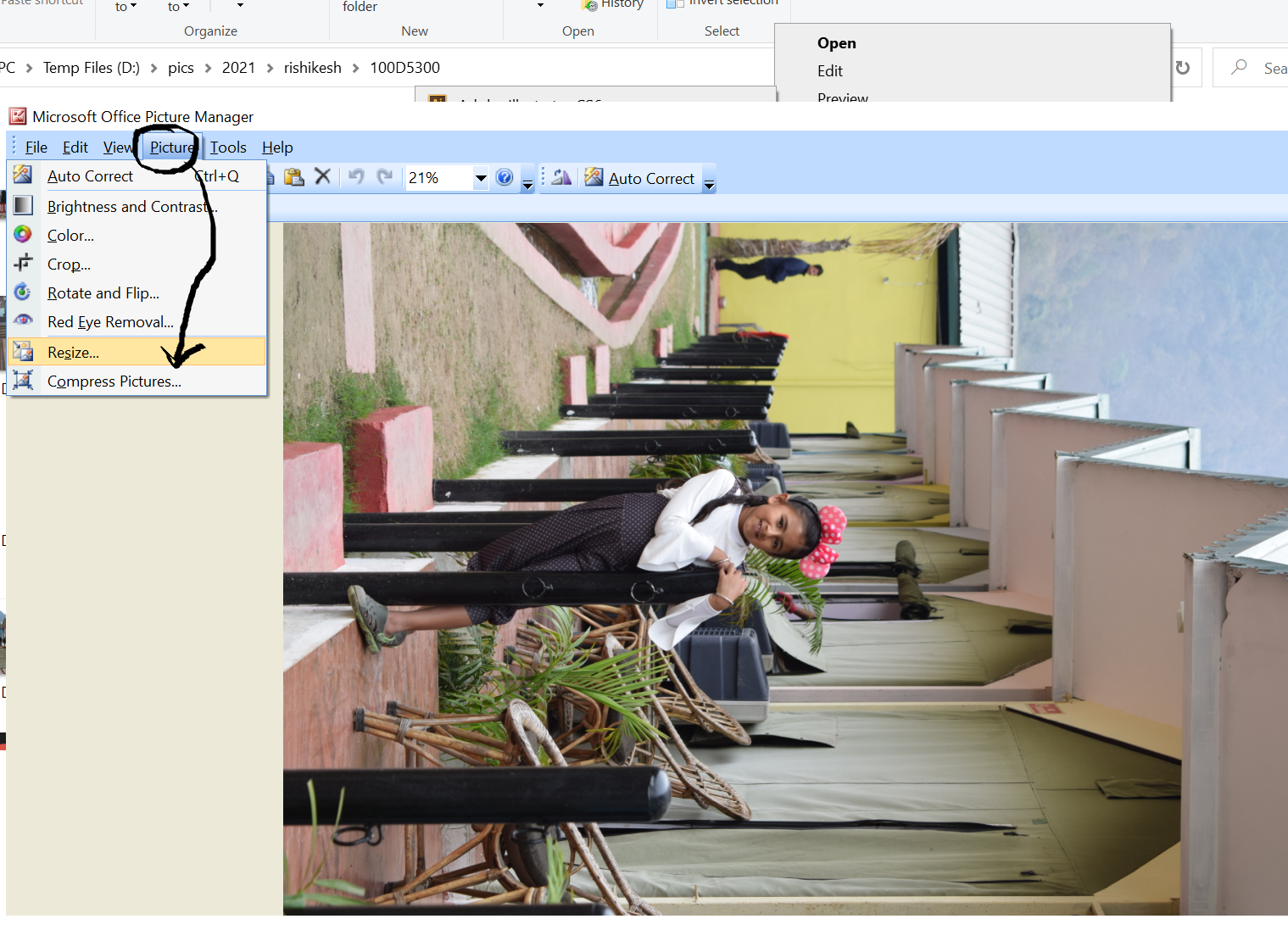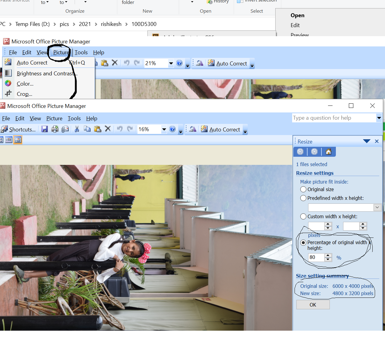 to change the size of an image. right-click on an image and open the image with Microsoft Office Picture Manager(or any other tool)