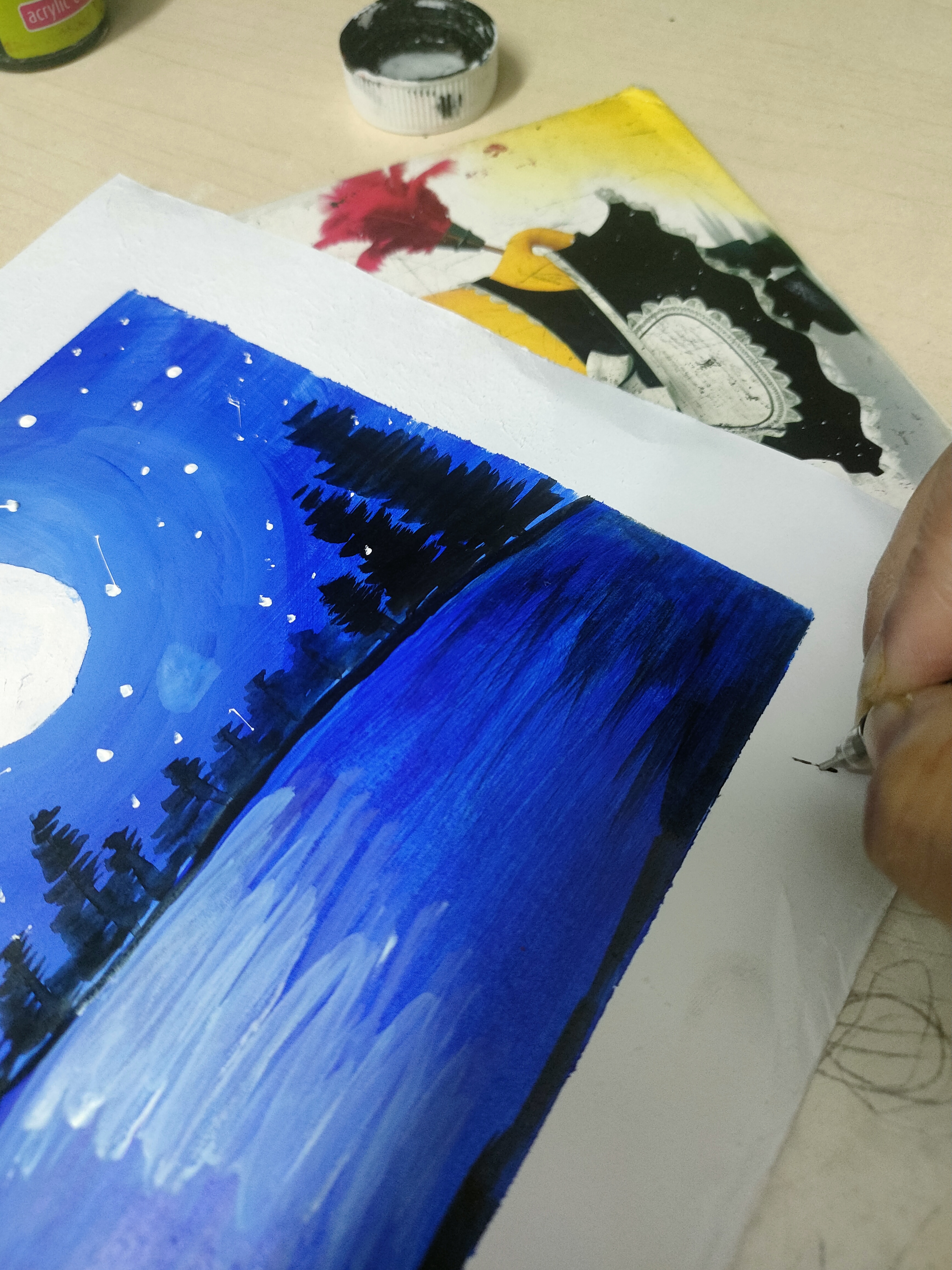 এখন দূরে আরো কিছু গাছ এঁকেছি এবং আকাশে ছোট ছোট তারা এঁকেছি।