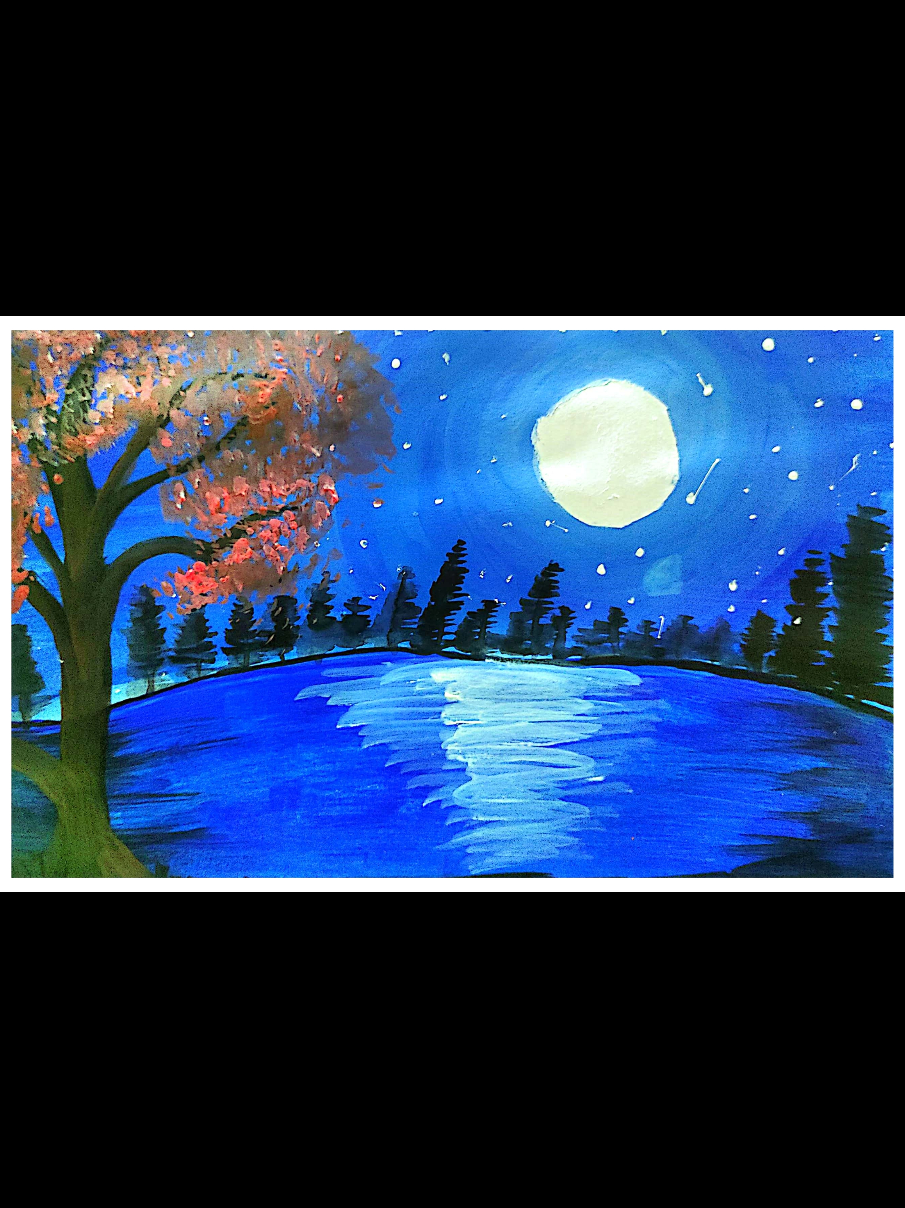 আপনার প্রতিটি আর্ট আমি ফলো করার চেষ্টা করি। আপনার আর্টের আর্ট প্রসেস দেখে জাস্ট অসাধারণ লাগলো৷ আপনি রং দিয়ে নদীর বুকে চাঁদের আলোর আর্ট করেছেন। এটা খুব ভালো ছিল.