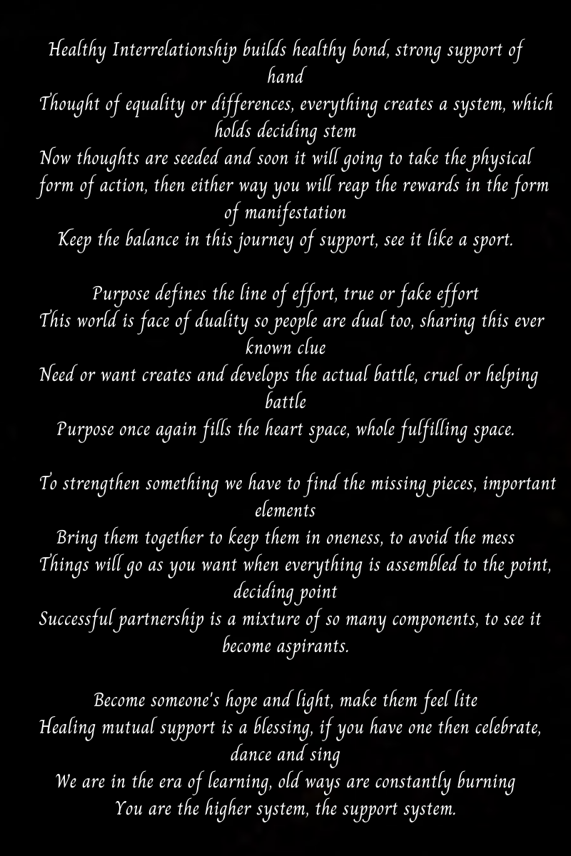 Healing mutual support is a blessing, if you have one then celebrate, dance and sing