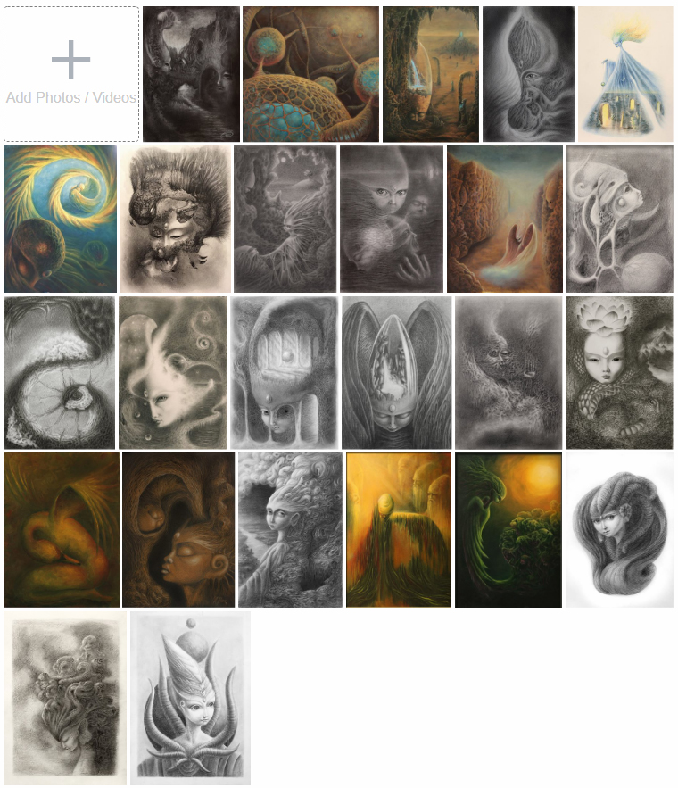 I made a Facebook album for you to see all the available artworks, with descriptions of each piece, you can find it here: https://www.facebook.com/sophilia.art/media_set?set=a.306887023253024&type=3.