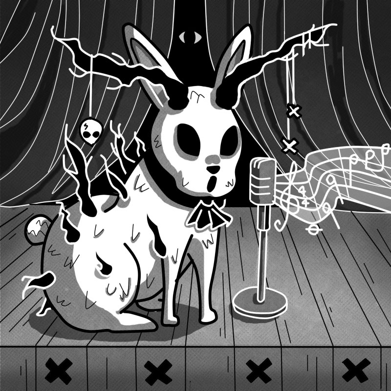 De verdad me pareció una idea graciosa ver a un Jackalope cantante en un escenario y todo. Esta ilustración, aunque no es perfecta, me gustó bastante y me dio ánimos en ese entonces de seguir con el Drawlloween. Ya me estaba acostumbrando al estilo nuevamente y al formato cuadrado.