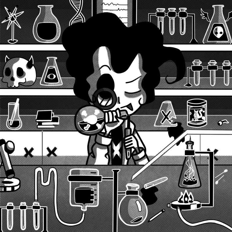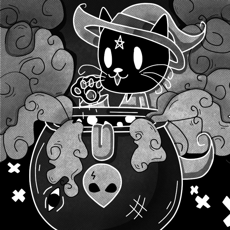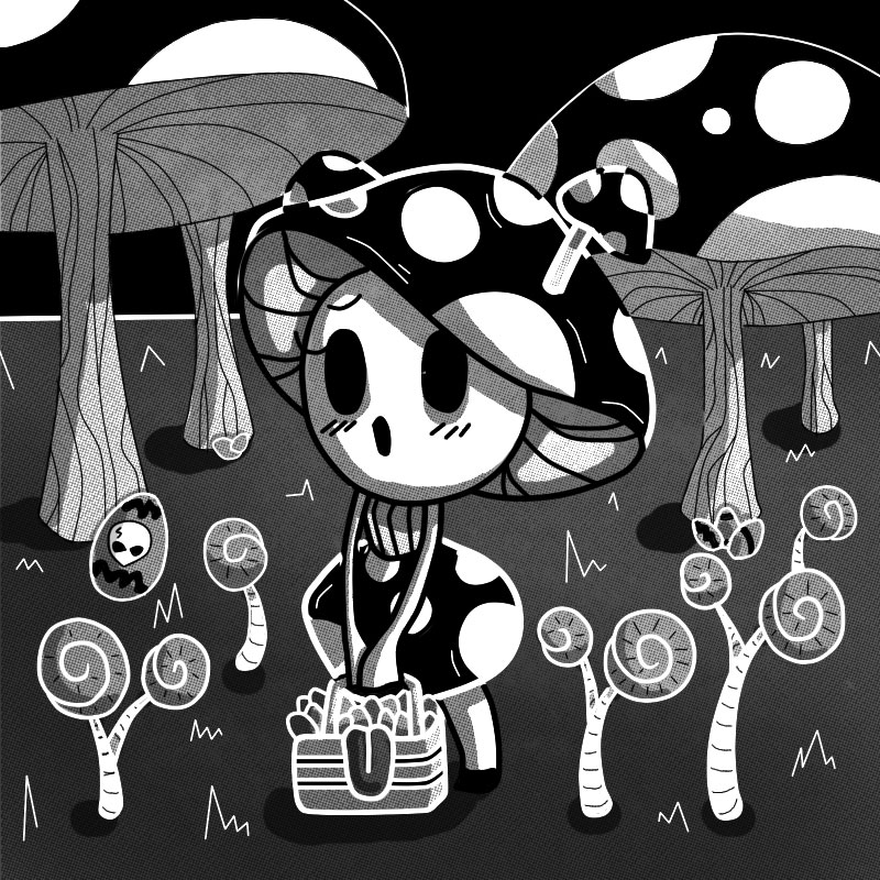 Esta sin duda alguna es mi ilustración favorita de todas y fue también con la que cerré el Drawlloween. No creo que sea coincidencia que la ilustración que más me haya gustado sea en la que aparece mi “selfsona”, debí haberme dibujado más 😺