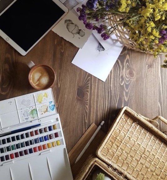 Cozy corners, art supplies, coffee maker on and the thing is to sketch whatever you want, as long as you want. Because the more you draw something the better is coming out. Stop when you feel satisfaction, not with your skills but your creation. This little new world that comes out from your paper...or iPad ....