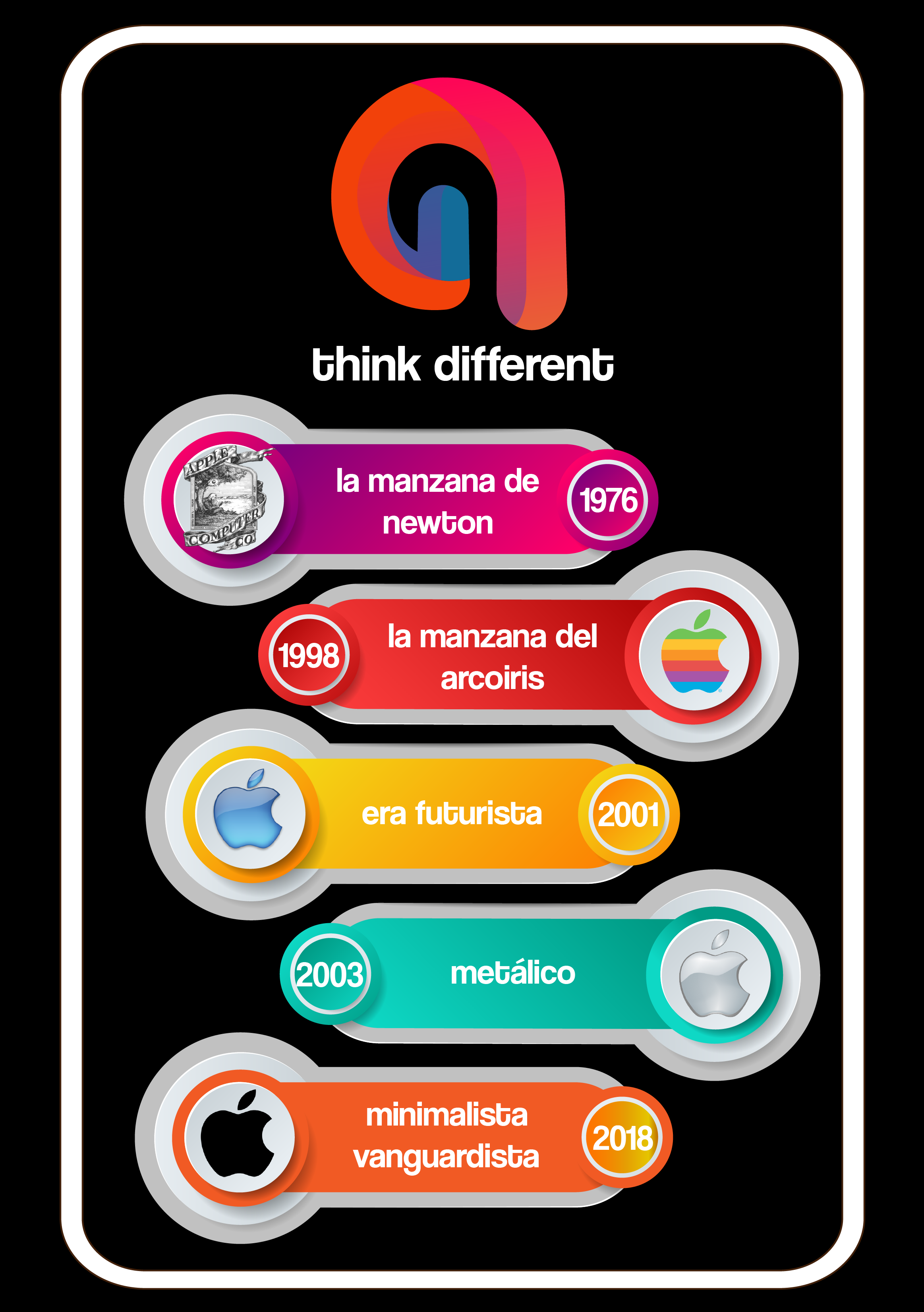 Before making this logo as a new proposal for apple (own experiment), I had the opportunity to read about the concept of this company, the changes and evolution of its designs; So I made this poster that tells in a dynamic way the history of the Apple logo.