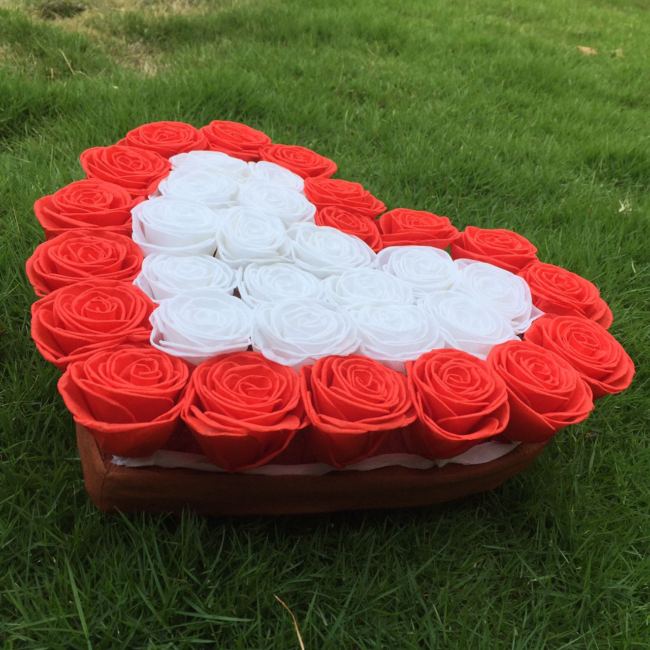 This is one of my favorite works, this arrangement contains 32 roses made by hand, each separately has a certain amount of petals, is delicate and perfect. I love it.