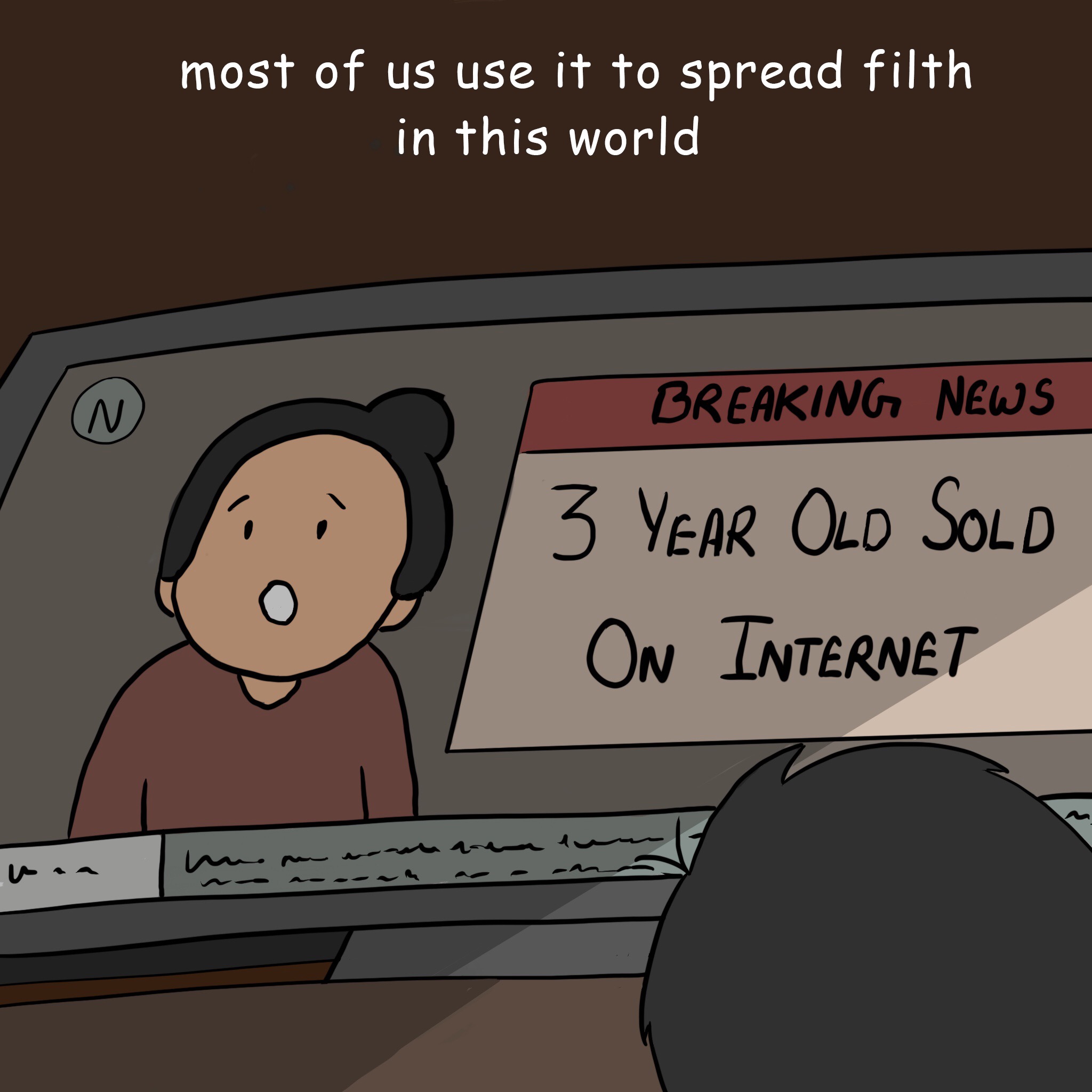 the internet, like a lot of powerful things, can be used for both good and evil ... i like your comic, it is a sober reminder of the things that we may take for granted <3 well done :)