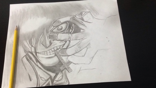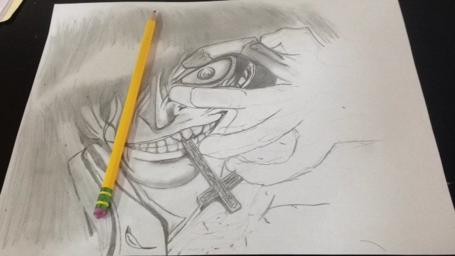 Me enfoque en su mirada psicópata para darle vida al dibujo aquí se puede observar.😅