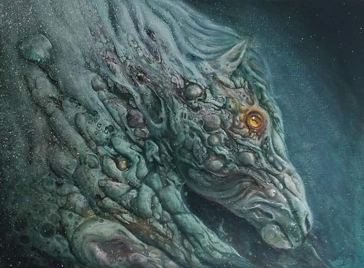 This is an oil painting I did for the strange dreams collective "mystical creatures" show. The idea came from the Scottish folk story of the kelpie, a shape shifting horse that entices people to ride it then drowns them.
