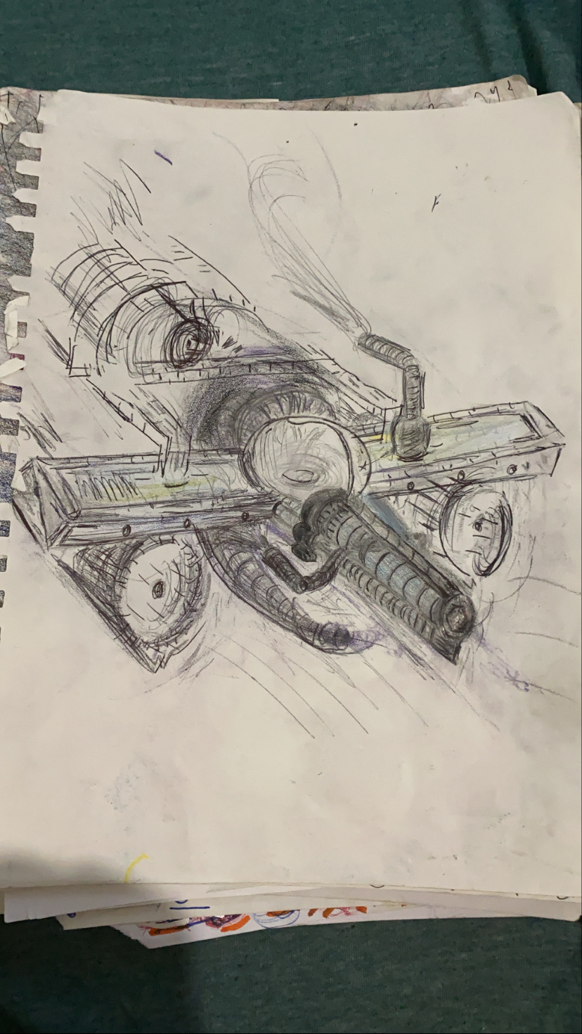 I don’t draw a whole bunch, but when I do it’s because I thought of something I can love with my heart. My heart goes out to spaceships, mostly because they’re cool and I like them. The first time I heard what a spaceship was, I cried because I really didn’t even know what they were talking about.