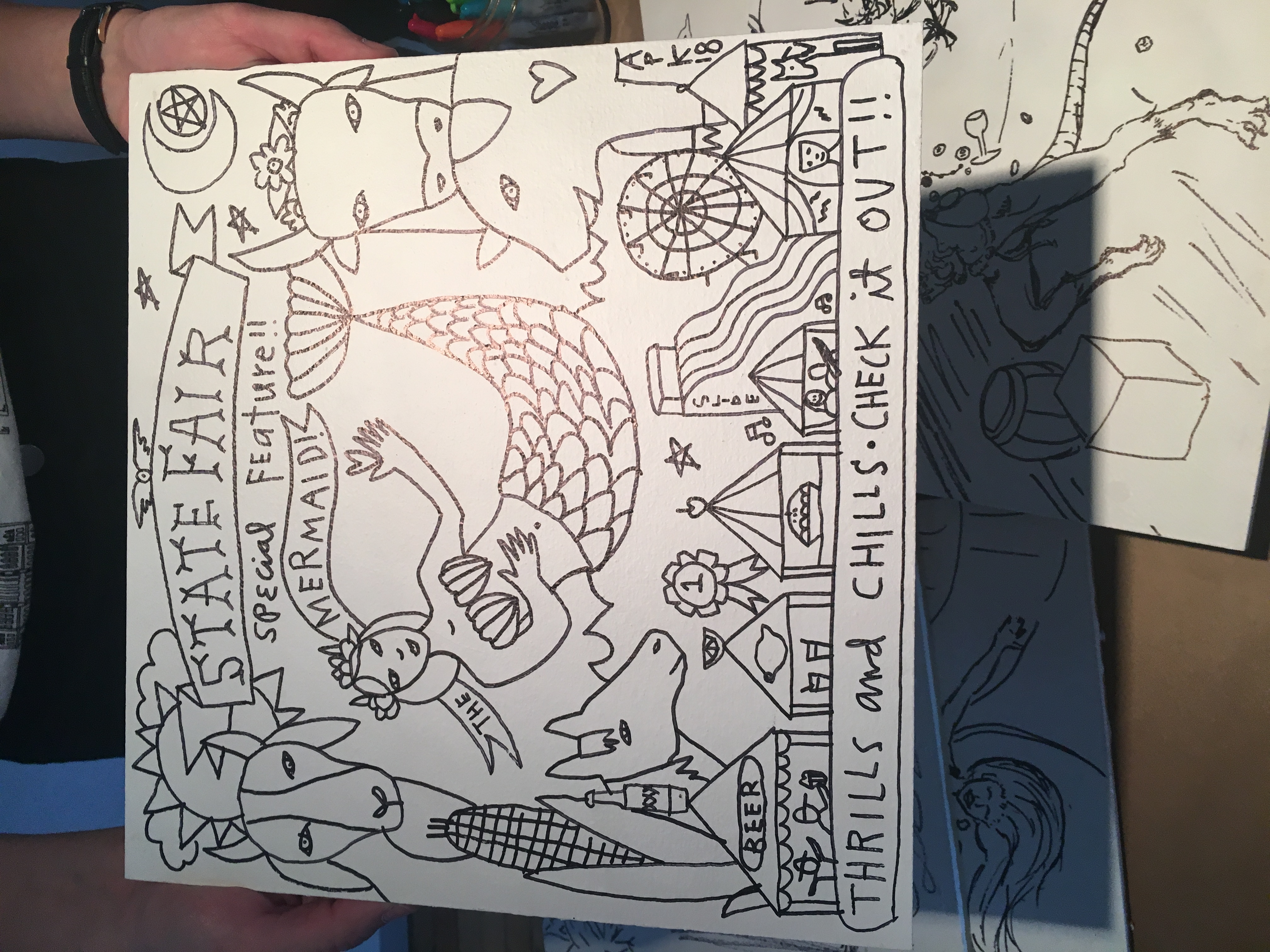 WARPAINT was tonight- bracket style drawing contest what you get a reandom theme to draw w/ another artist & audience votes on who moves forward.. I made it to the semi-finals & was out.