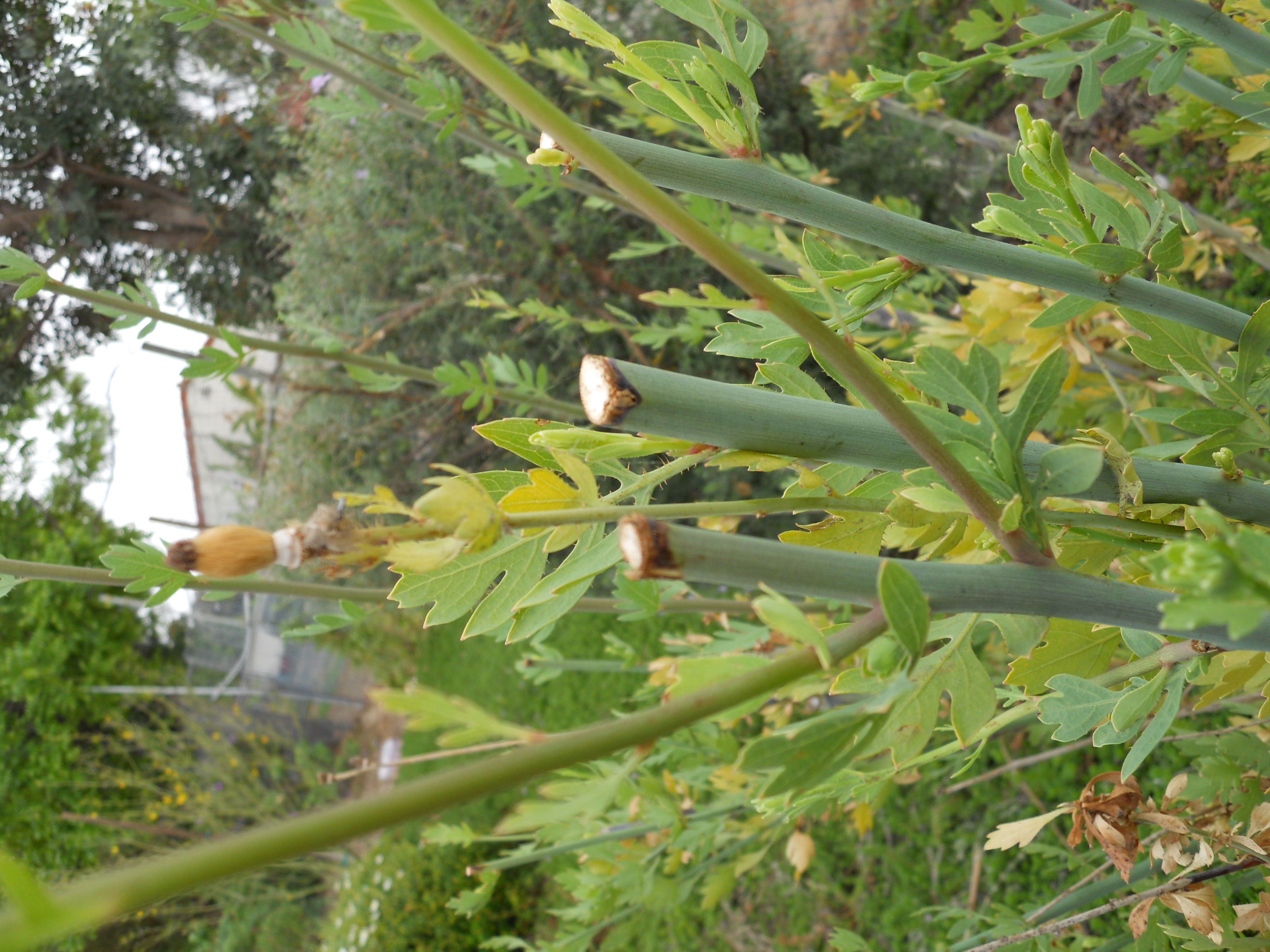 This photo is of a poppy plant with seedheads cut off, probably by the local dopers. They cut the heads and grind up them up to extract opium. At least that's what I think. I know the area, and while the area is pretty decent, it's always had addicts. It's suburban, but used to be agricultural, and always had some drugs going on.