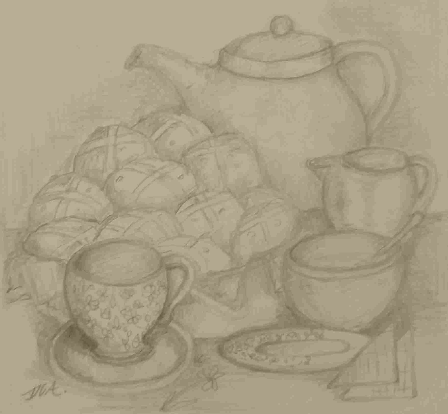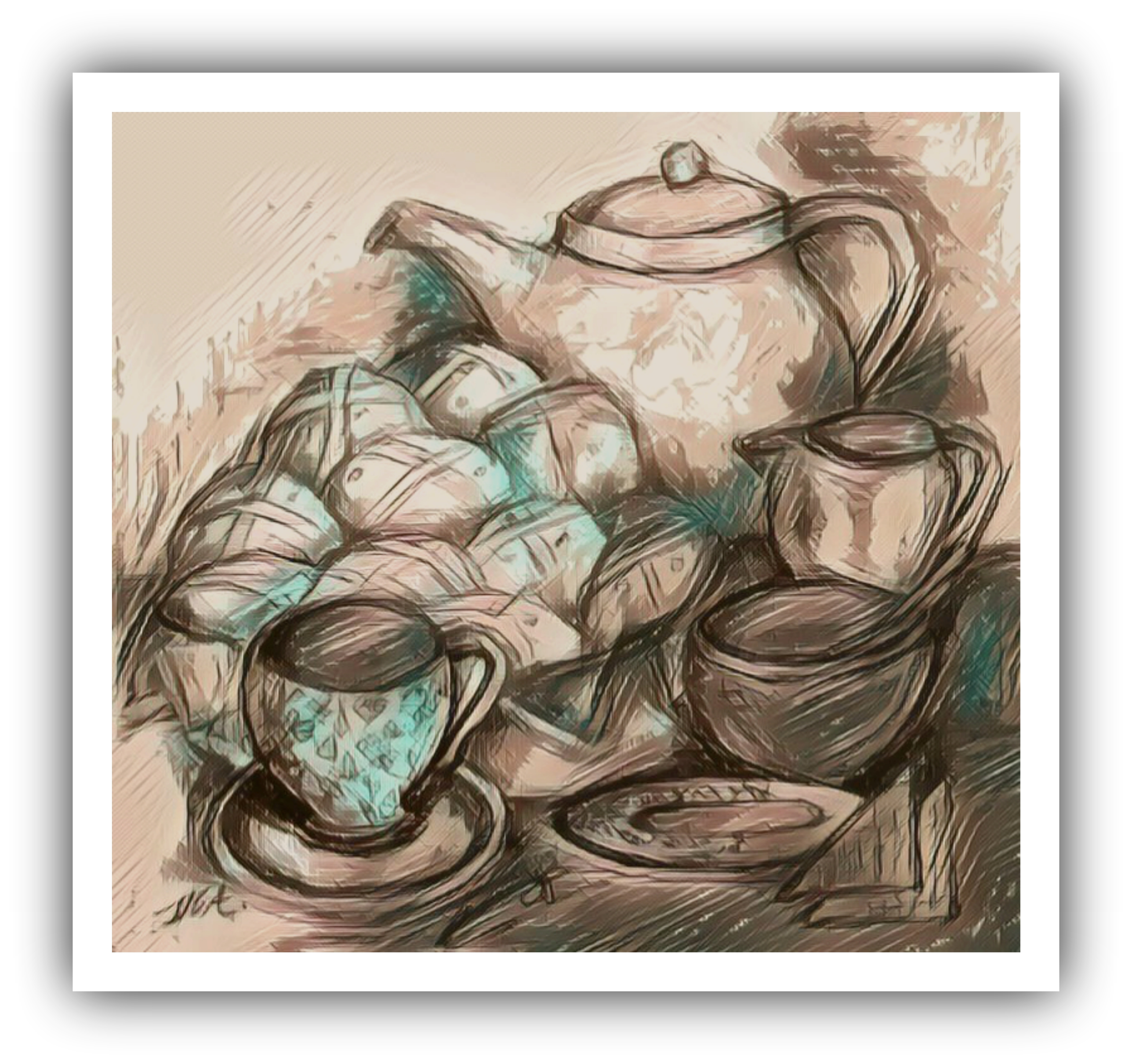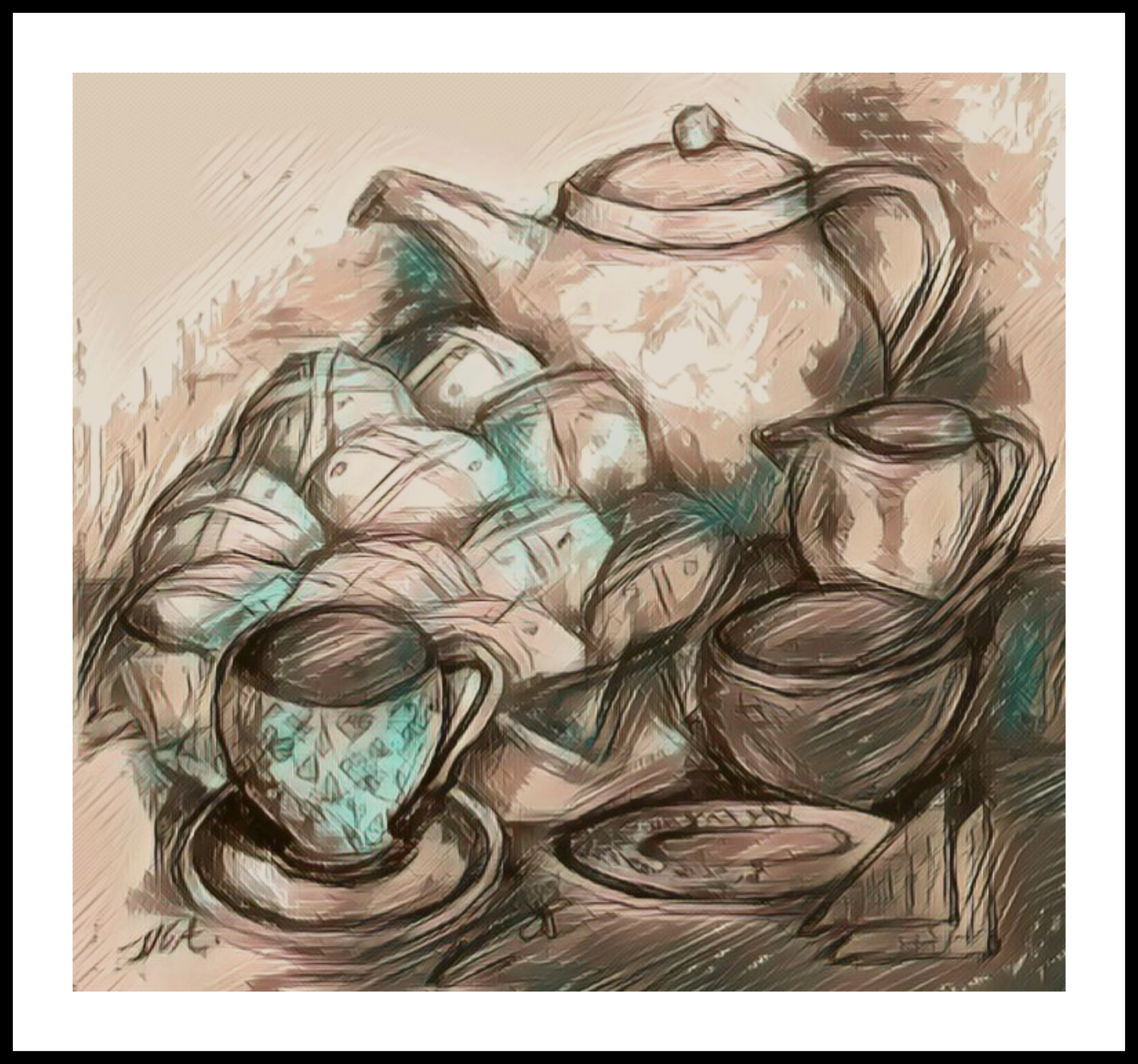 Time For Teadianadee (67)memberVery creative mindin ART 🌻🎨📝 • 6 years ago I created this art from the pencil drawing at the foot of the page. Like the soft muted colours with a touch of blue. Credit - my own drawing and editing D.C.A. is my signature Diana Carol Abrahamson Hope you are having a good week God bless :) #art #still-life #drawing #digital-art #digital-edit #art-venture #we4steem
