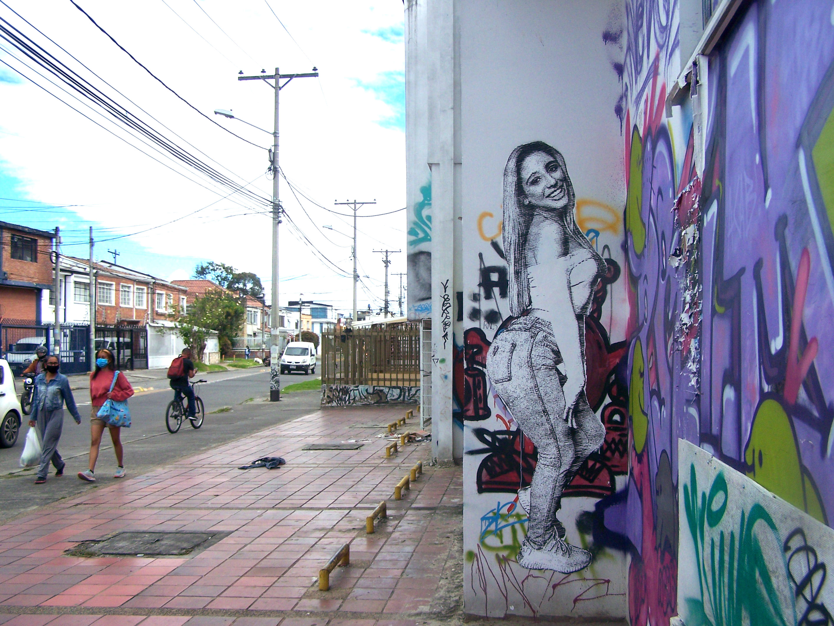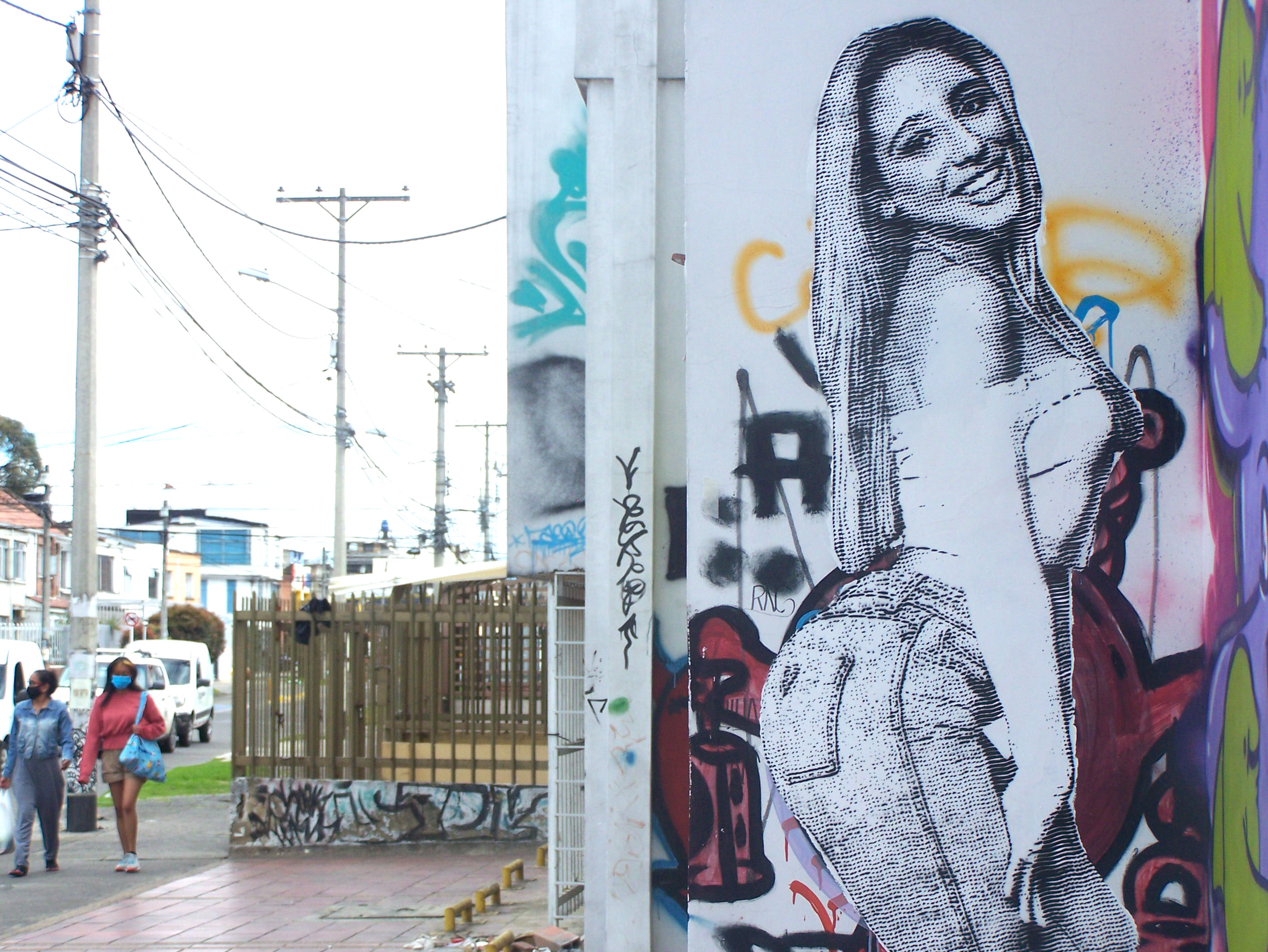 well this is a handmade stencil over an abandoned building wall in a kind of art district in Bogotá, i spent a little of white acrilic paint and one black spray paint for do it, this image took me just 30 minutes to paint but to cut the stencil i spent like two days