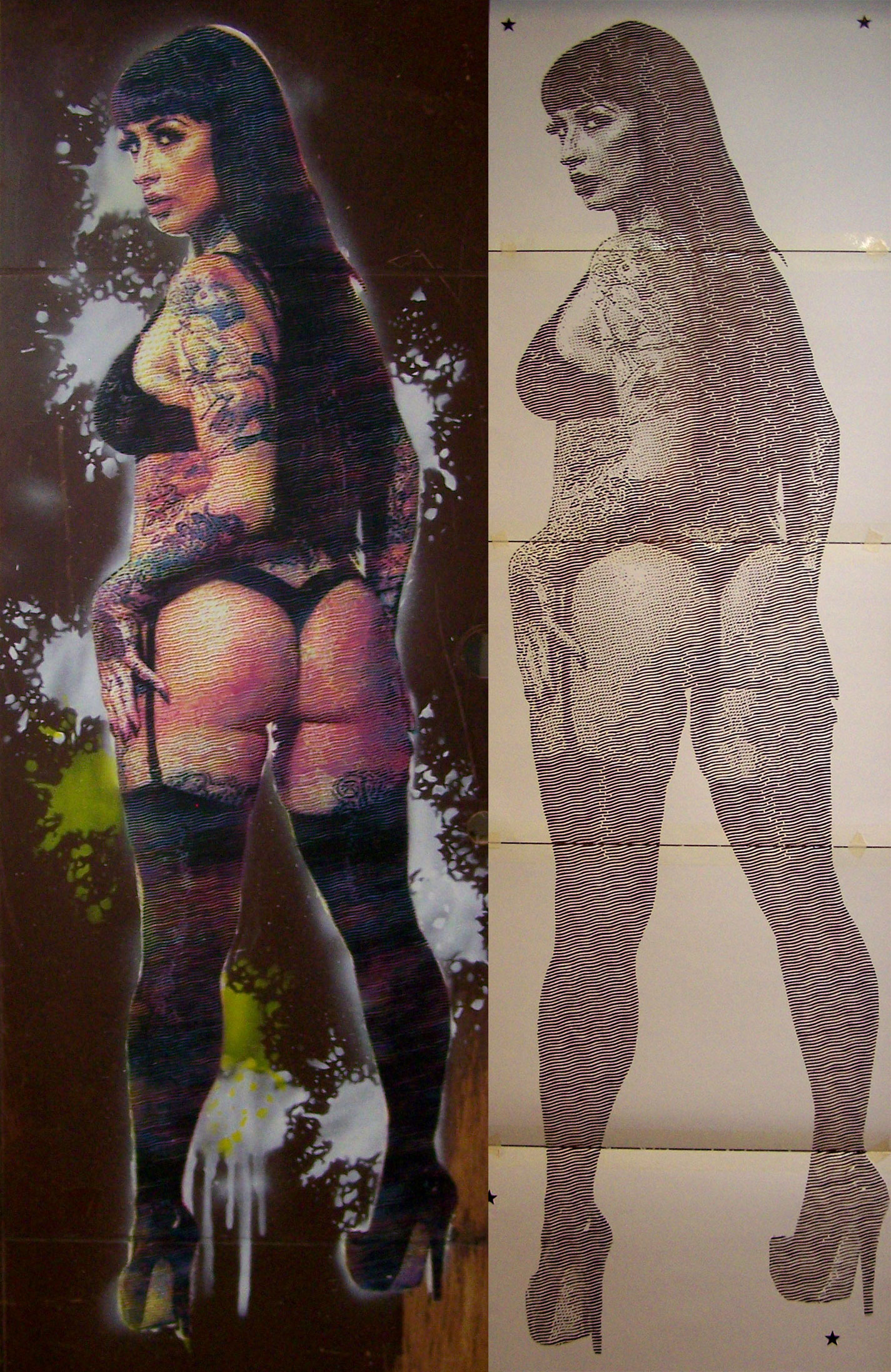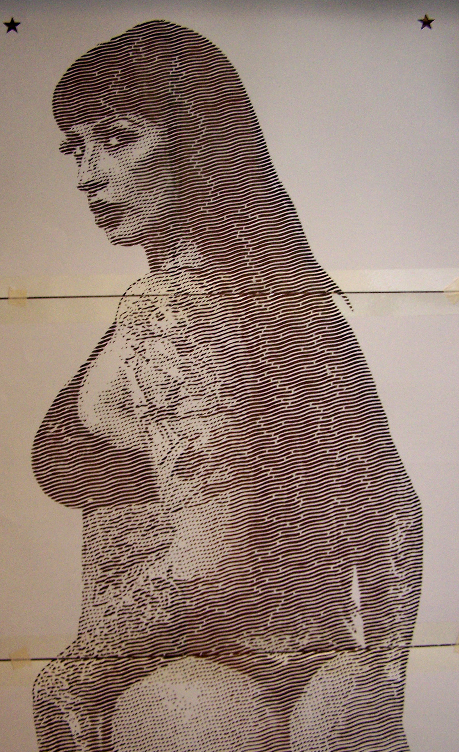 Jessie Leeemptyboy (60)in #art • 2 years ago this is a handmade stencil that i did over a wood door, i used four paper layers to create the cmyk effect, in this post i show just the magenta layer without painting to aprecciate the cuts in the paper, enjoy!! #stencil #pictures