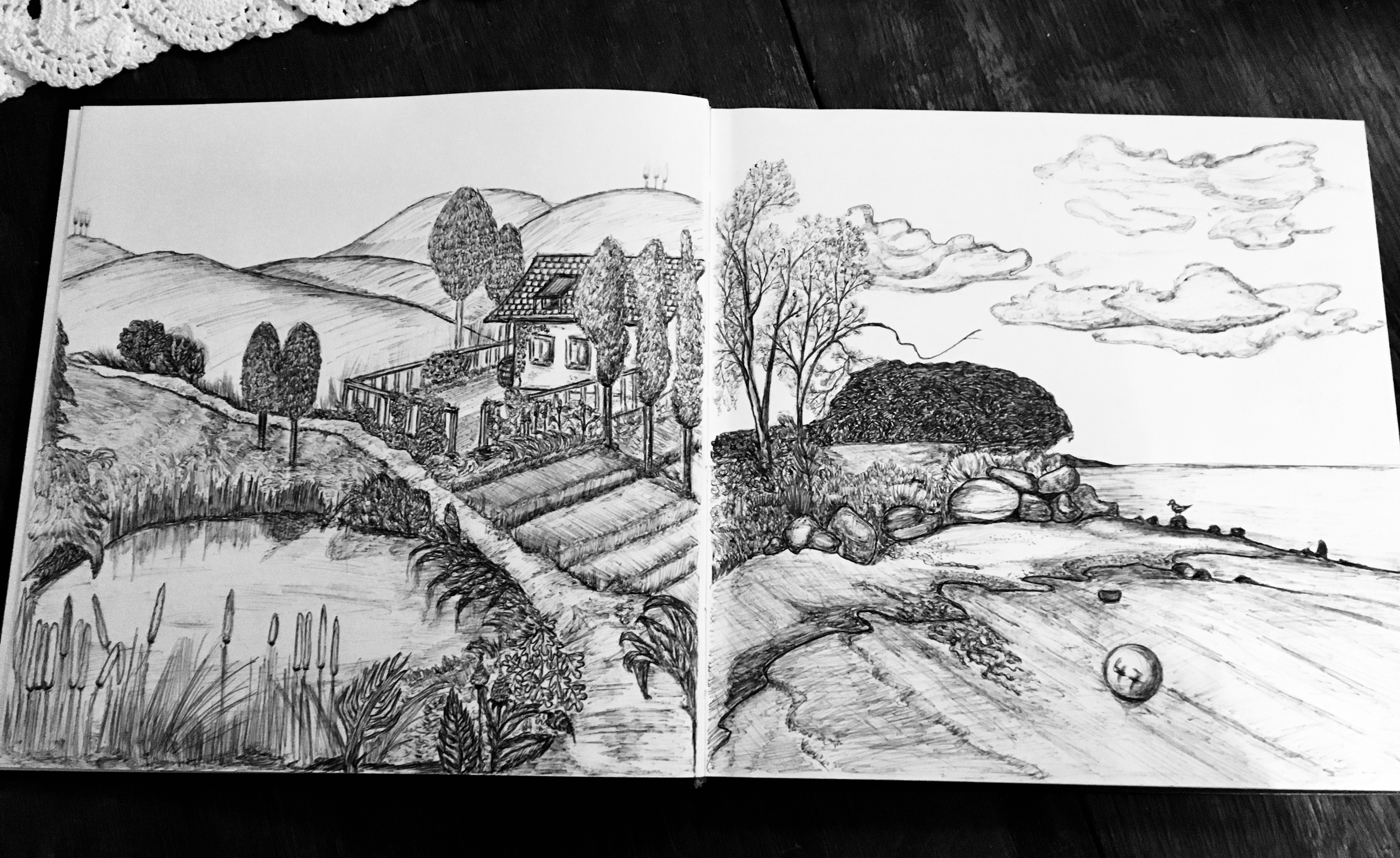 So now I come to these drawings, which I started on vacation in Denmark about three years ago. I bought the sketchbook in Sønderborg. That was the biggest town near Fynshav, our little vacation hiding place.