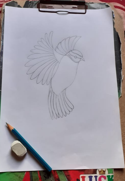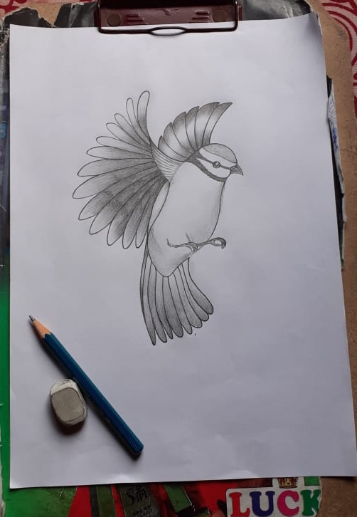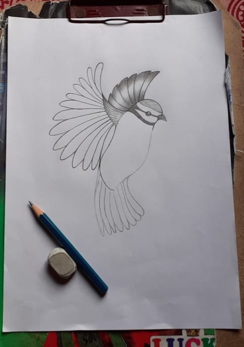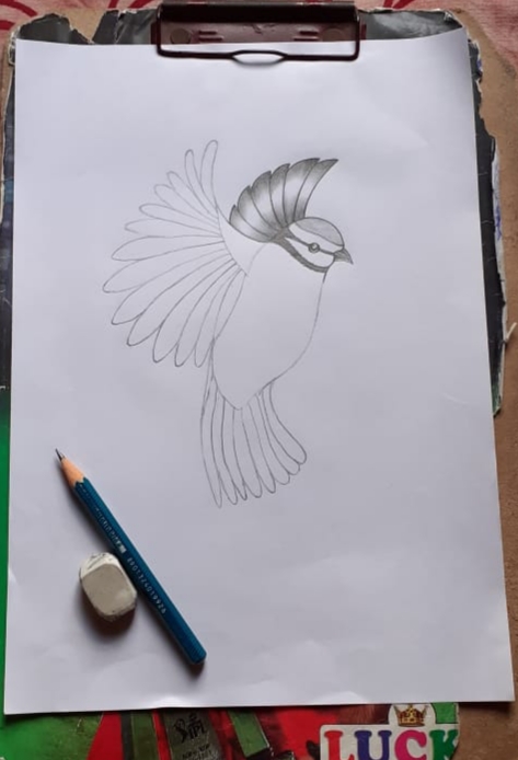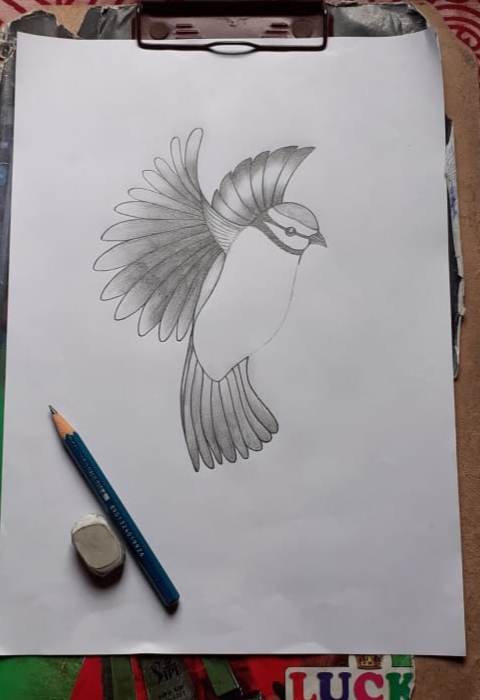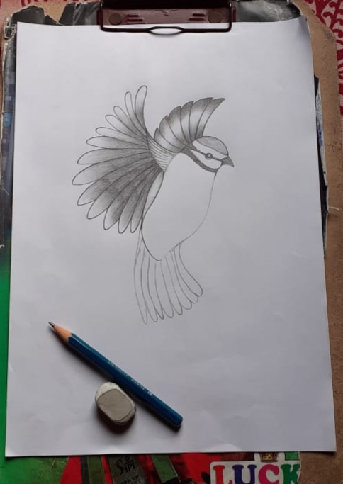 নমস্কার বন্ধুরা, অনেকদিন বাদে আজকে একটি নতুন ড্রয়িং নিয়ে আপনাদের সামনে হাজির হলাম। আজকে একটা ভিন্ন ধরণের ড্রয়িং করেছি। আজকে আমি একটি পাখির ছবি ড্রয়িং করেছি। এই পাখির ছবিটি আমি সম্পূর্ণ নিজের মনের মতো করে অঙ্কন করেছি। প্রথমে আমি পাখিটির একটি শেপ অঙ্কন করে নিয়েছিলাম এবং তারপর সেটি স্টেপ বাই স্টেপ ড্রয়িং করে সম্পন্ন করেছি। এখানে আমি পাখিটির যে দৃশ্যটা ফুটানোর চেষ্টা করেছি সেটি হলো পাখিটি উড়ন্ত অবস্থায় আছে এবং কোথাও বসবে বসবে এমন একটা ভাবমূর্তি অনুযায়ী করেছি।