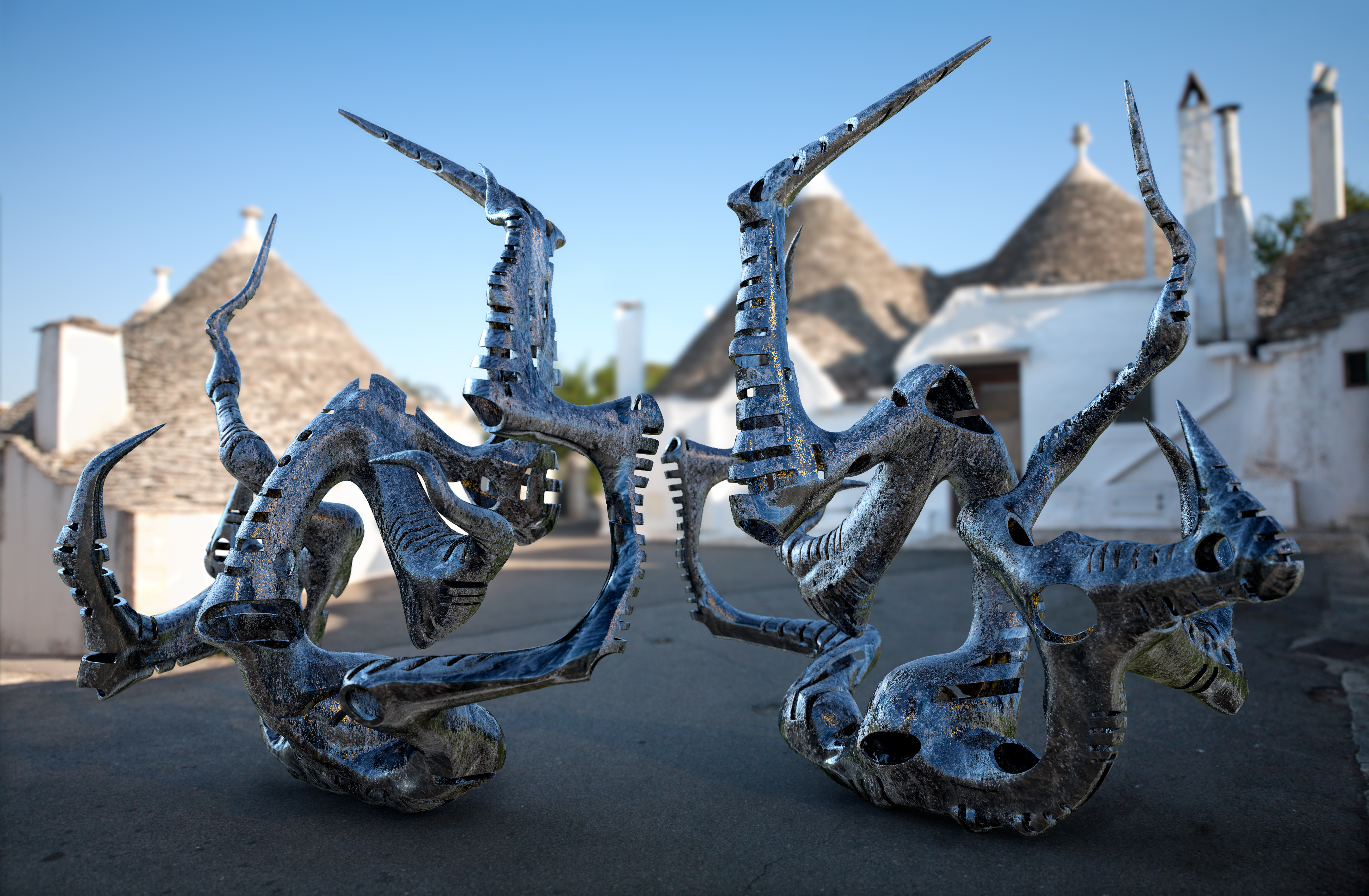 The real image I took was used as background in Cinema 4d and its light and its colours determine the illumination of the virtual object, that is the digital sculpture.