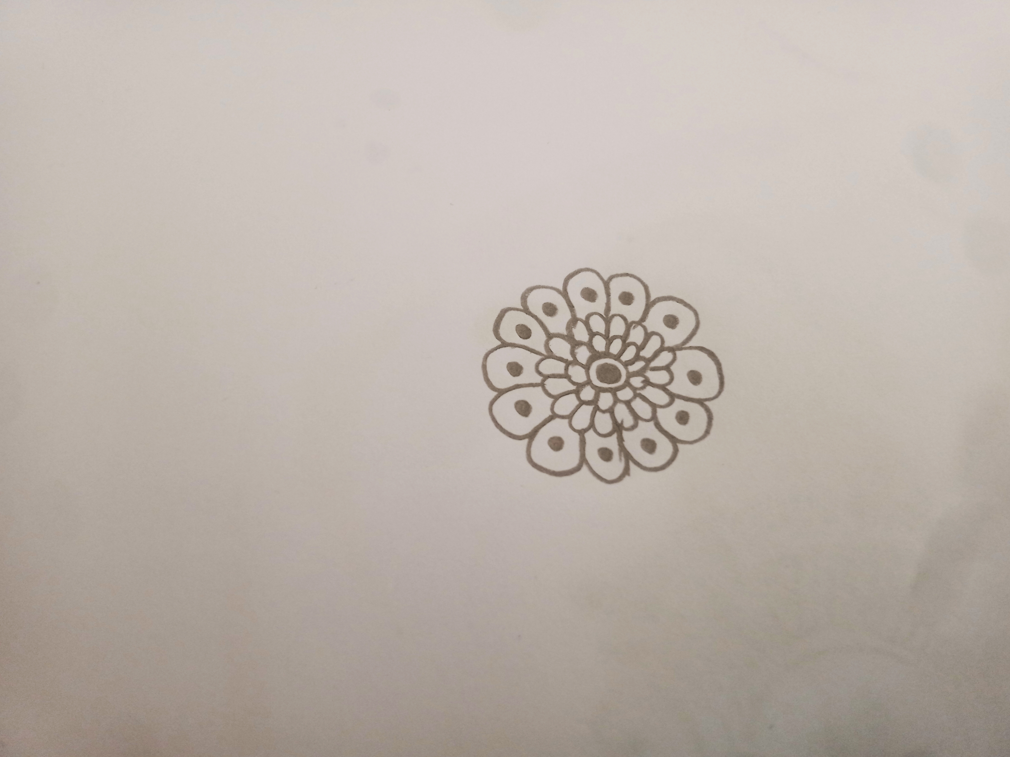 তার উপরে আবার পাপঁড়ির মতো একেঁ দিলাম। এবারের পাপঁড়ি একটু বড় করে এবং পাপঁড়ির ভিতরে ছোট ছোট বৃত্ত করে দিলাম।