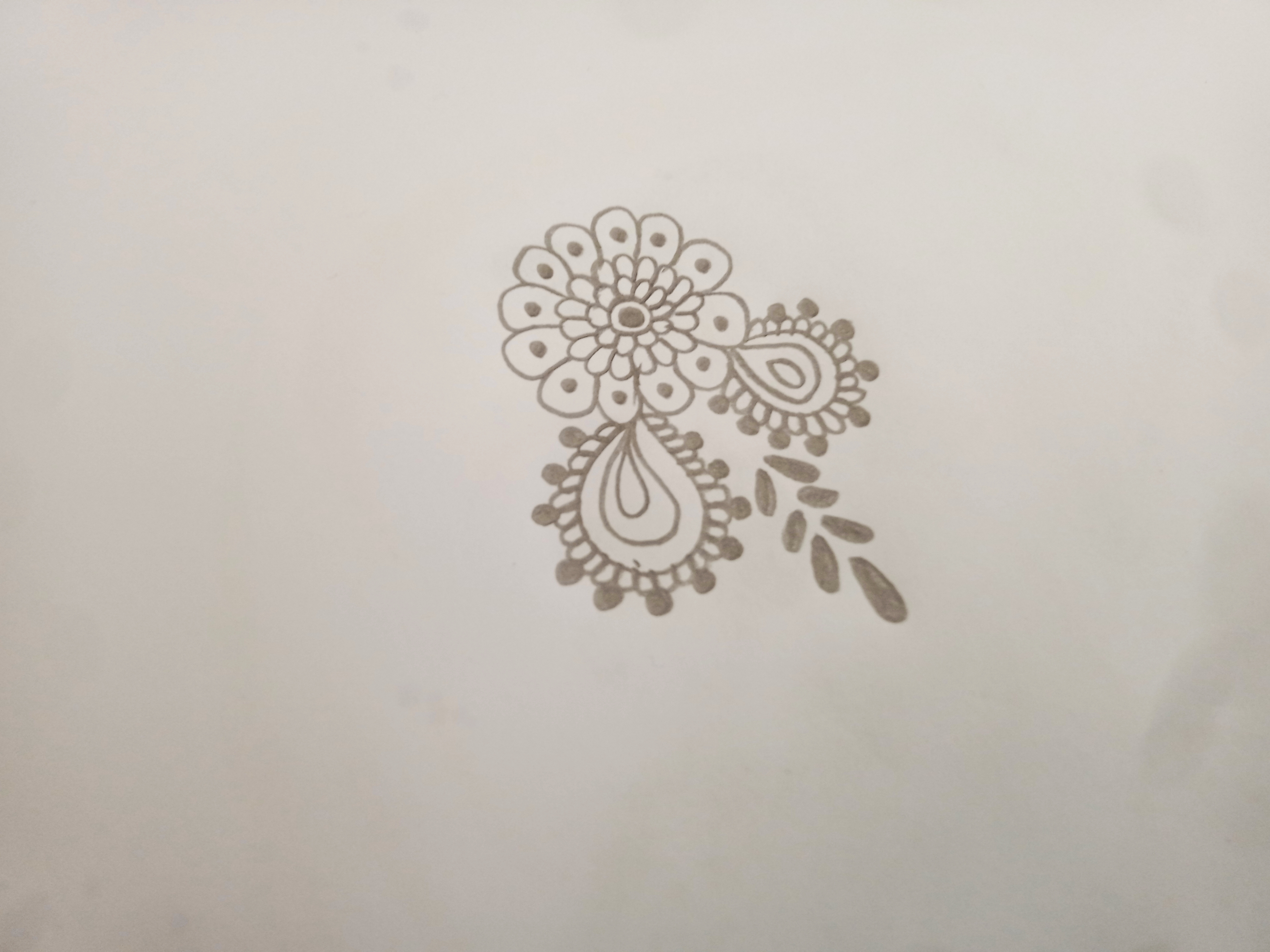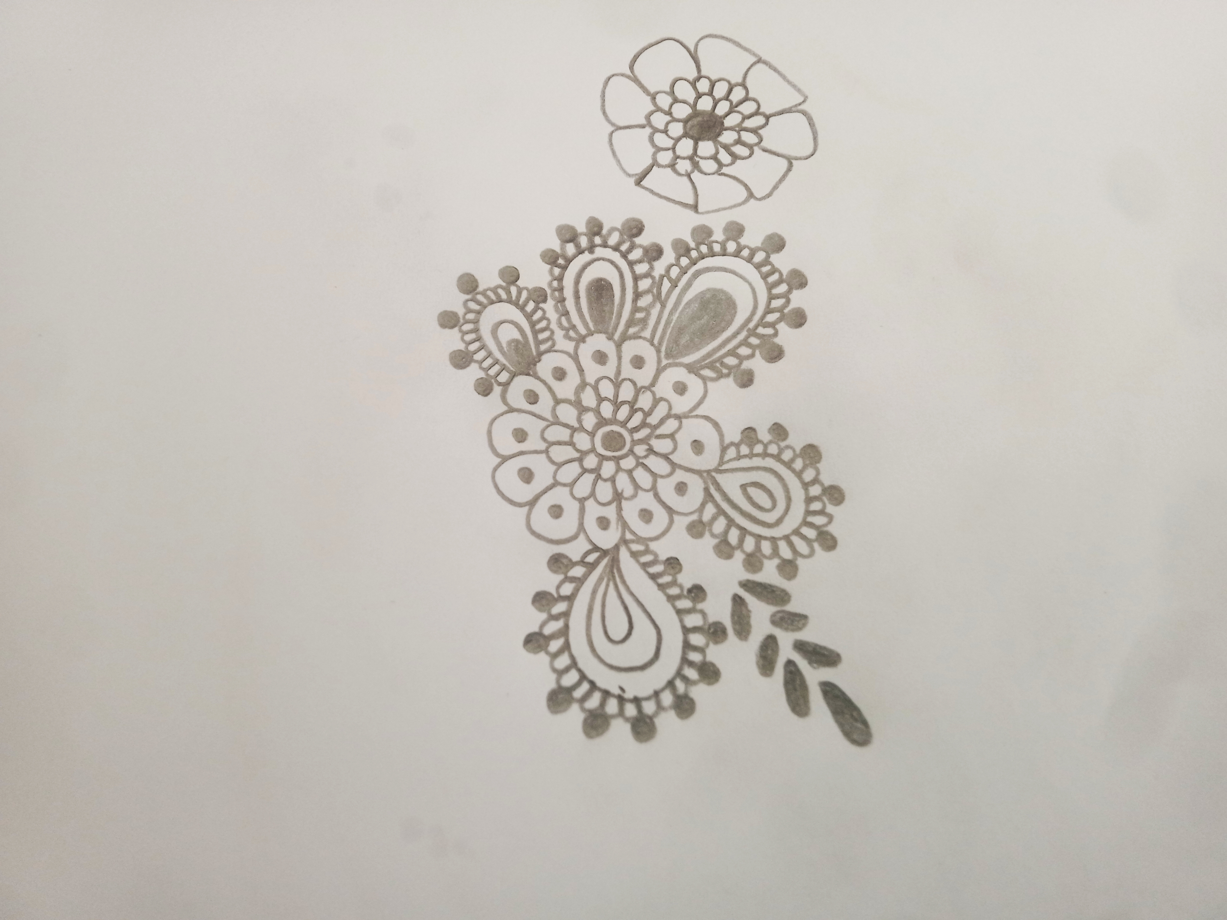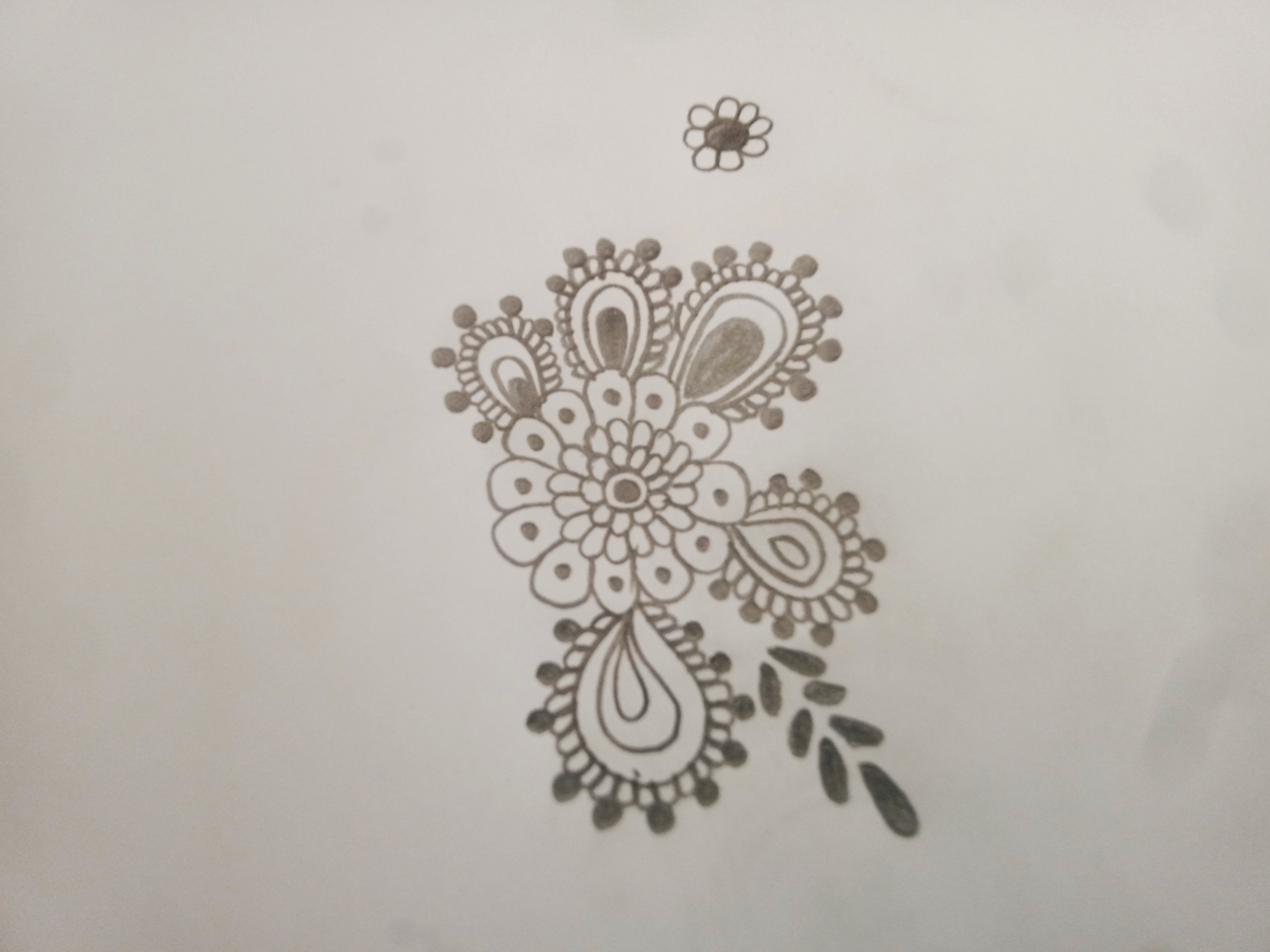 এবার আরও একটি ফুলের মতো একেঁ দিলাম এবং তার। পাশে পাতার পাশে ডিজাইন করে দিলাম।