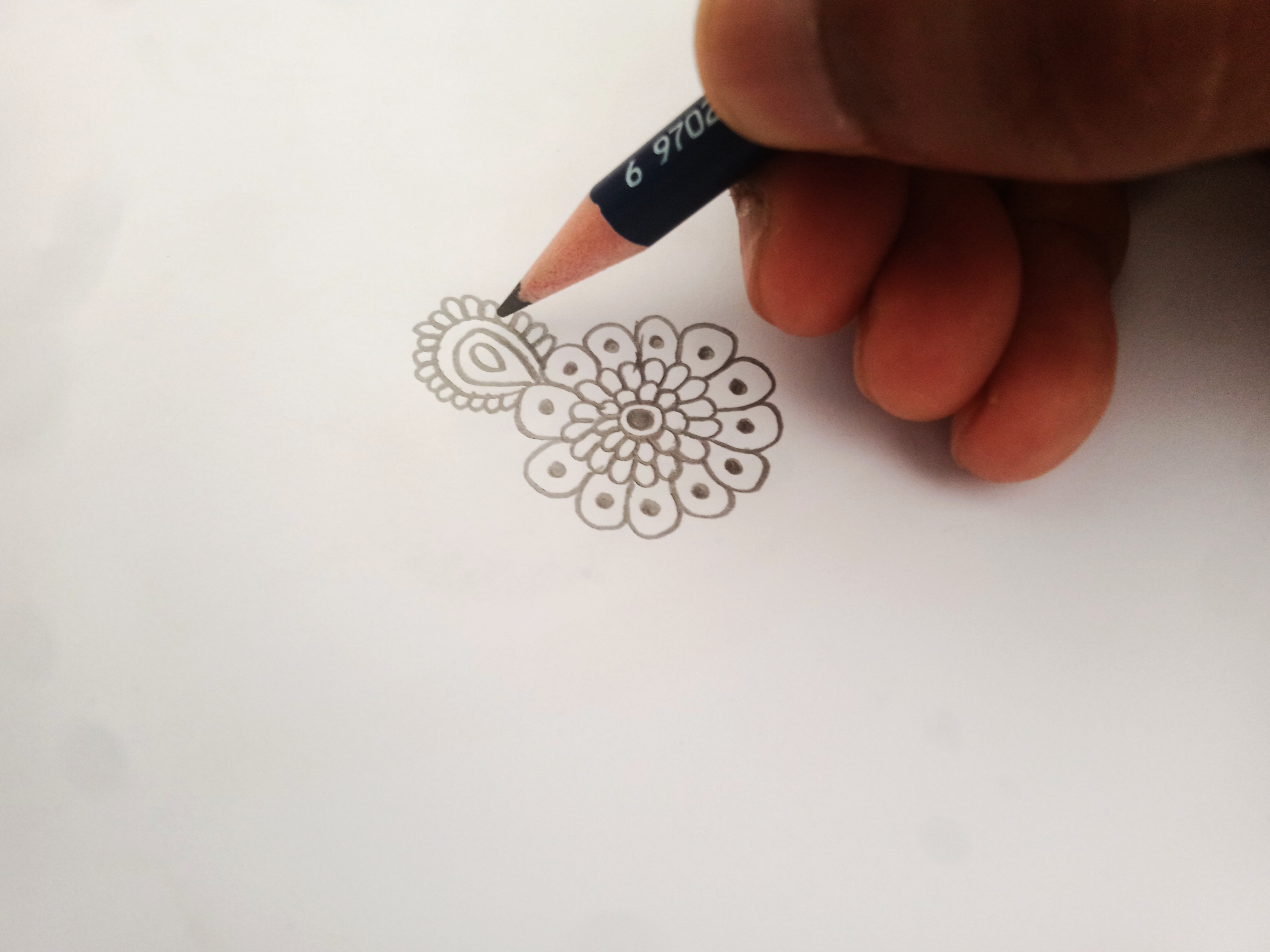 এবার মেইন ফুলের ডিজাইনের সাথে শেষের ফুলের ডিজাইনটি র মধ্যে কানেকশনের জন্য ফুলের পাতার মতো শেপ দিয়ে দিলাম।