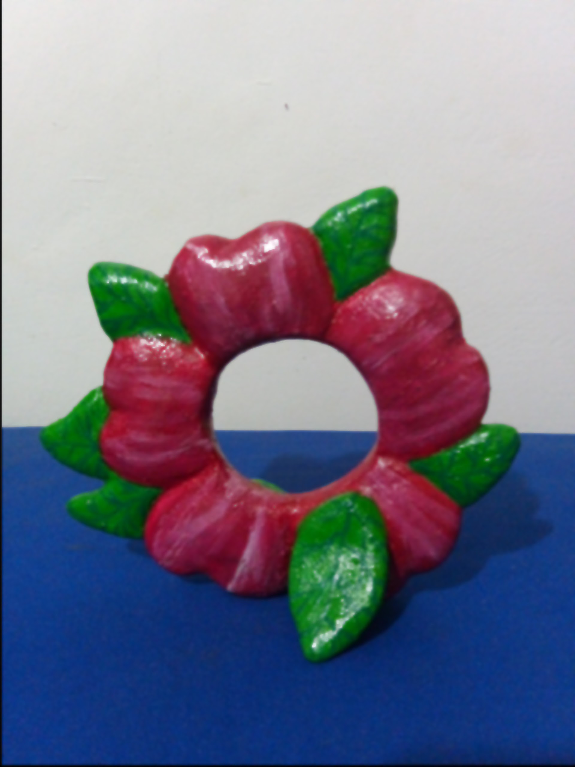 En la arcilla estirada coloque la plantilla y corte la figura, luego le quite la plantilla y le coloque suficiente arcilla para darle volumen la forma de flor y luego hacer un molde de yeso.