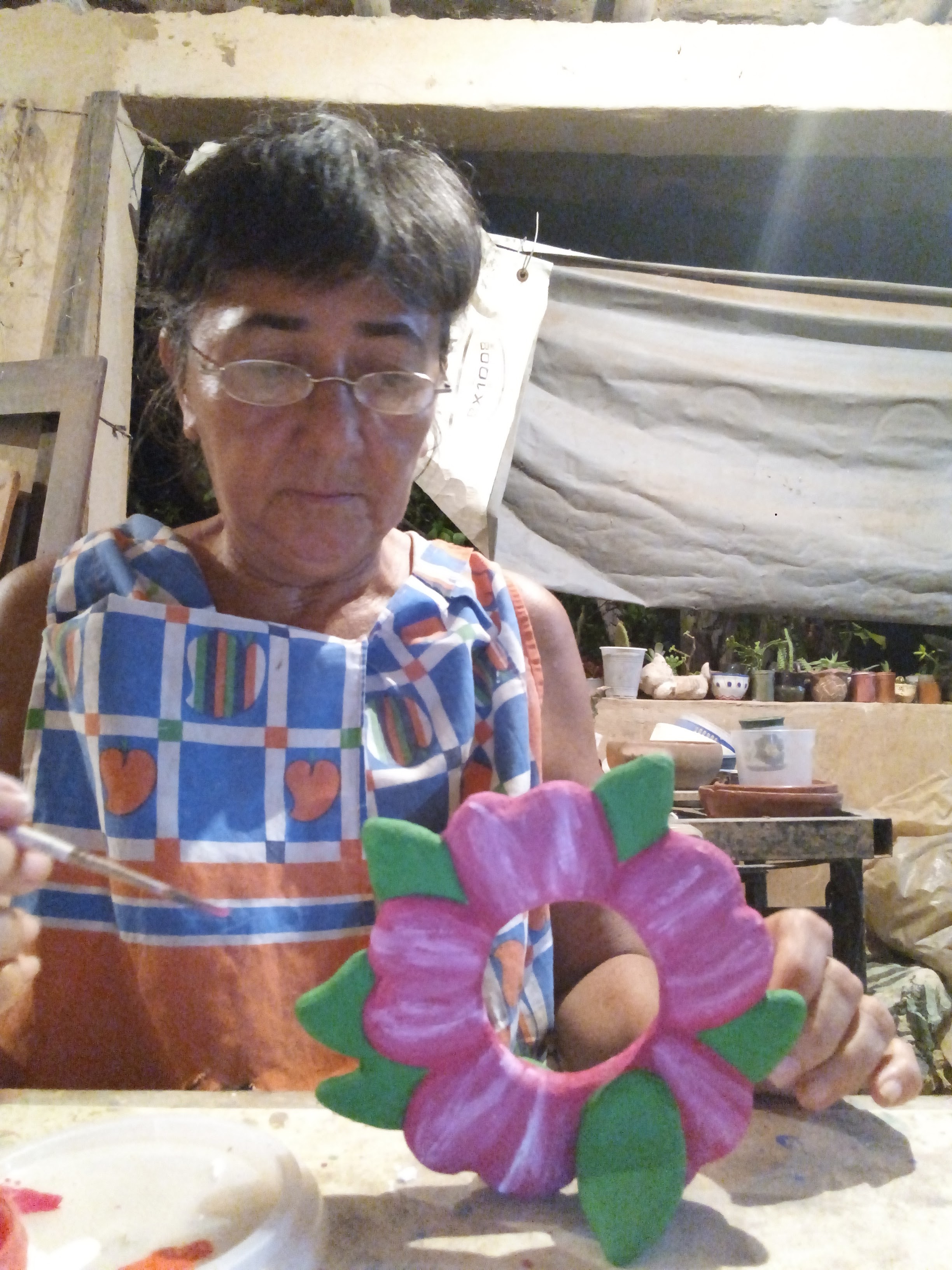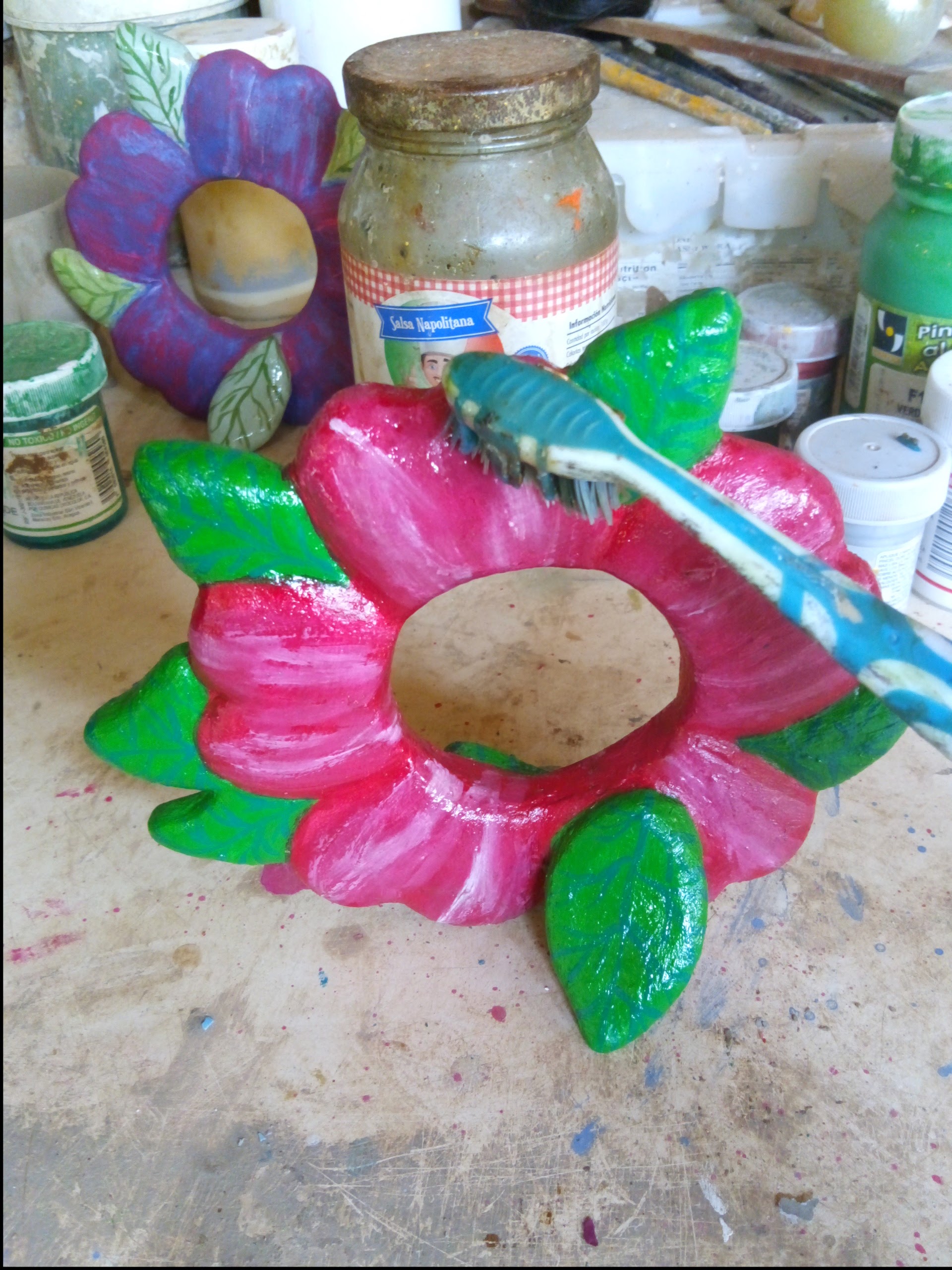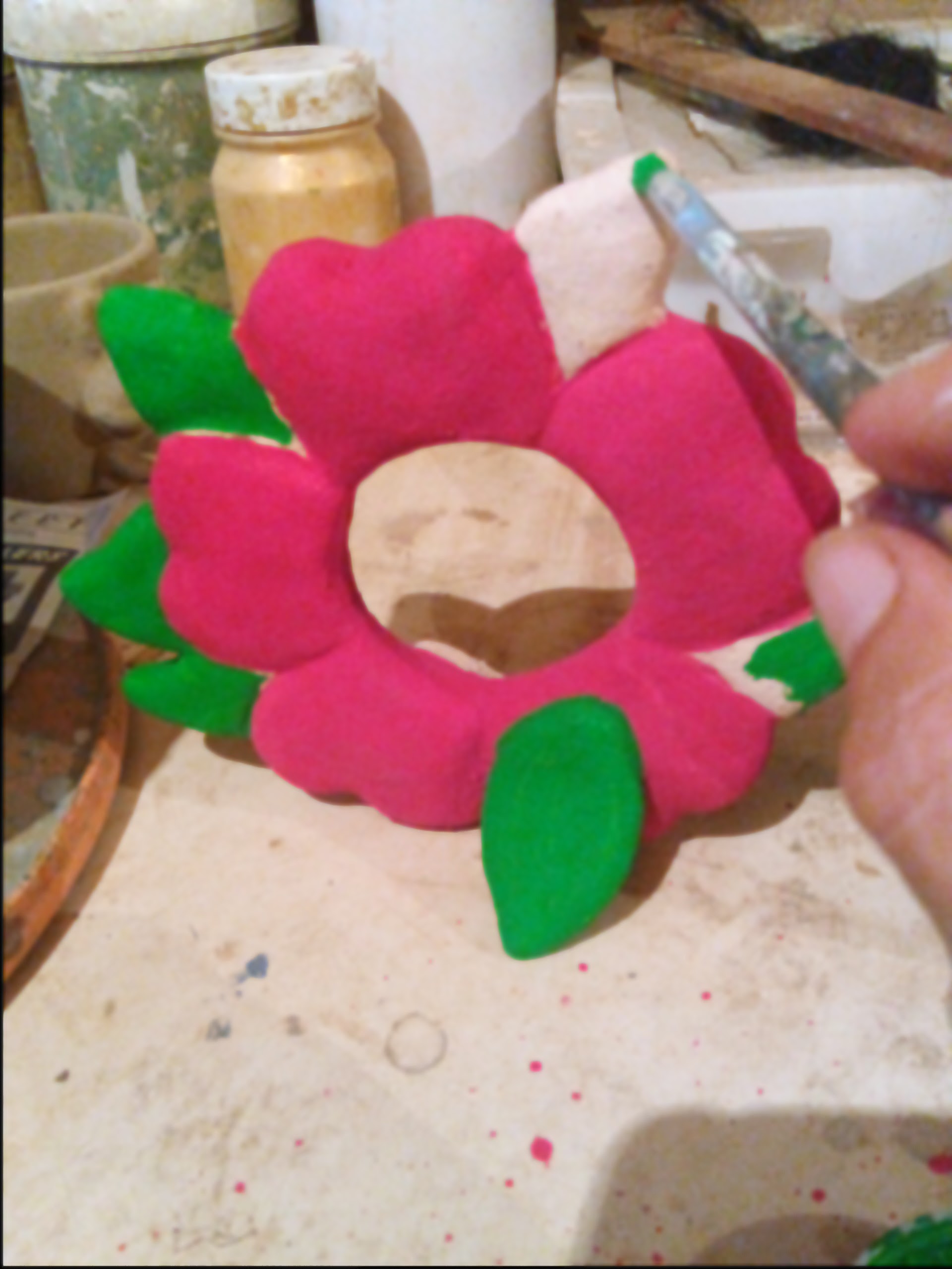 Ya horneada la pieza procedo a pintarla con pinturas acrílicas.
