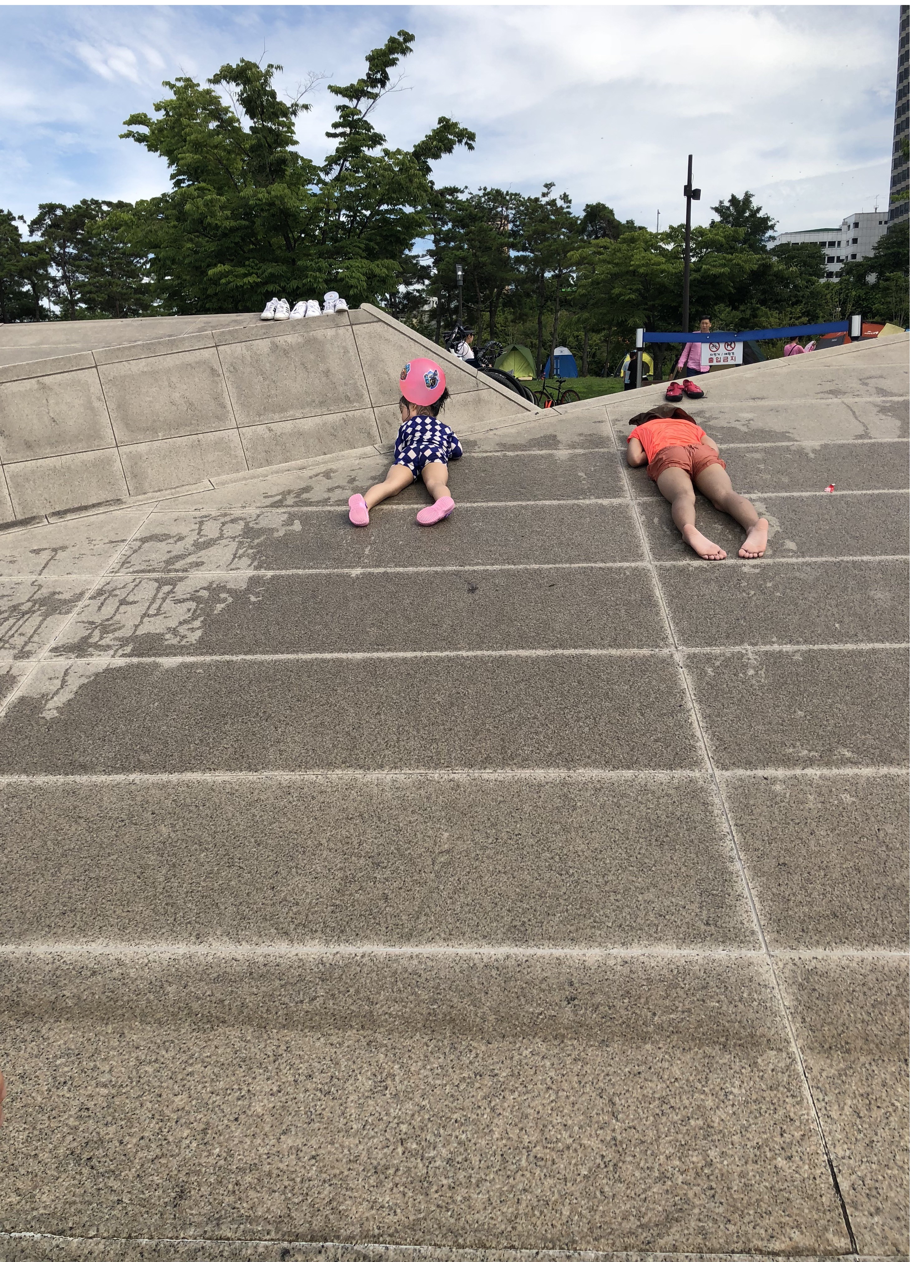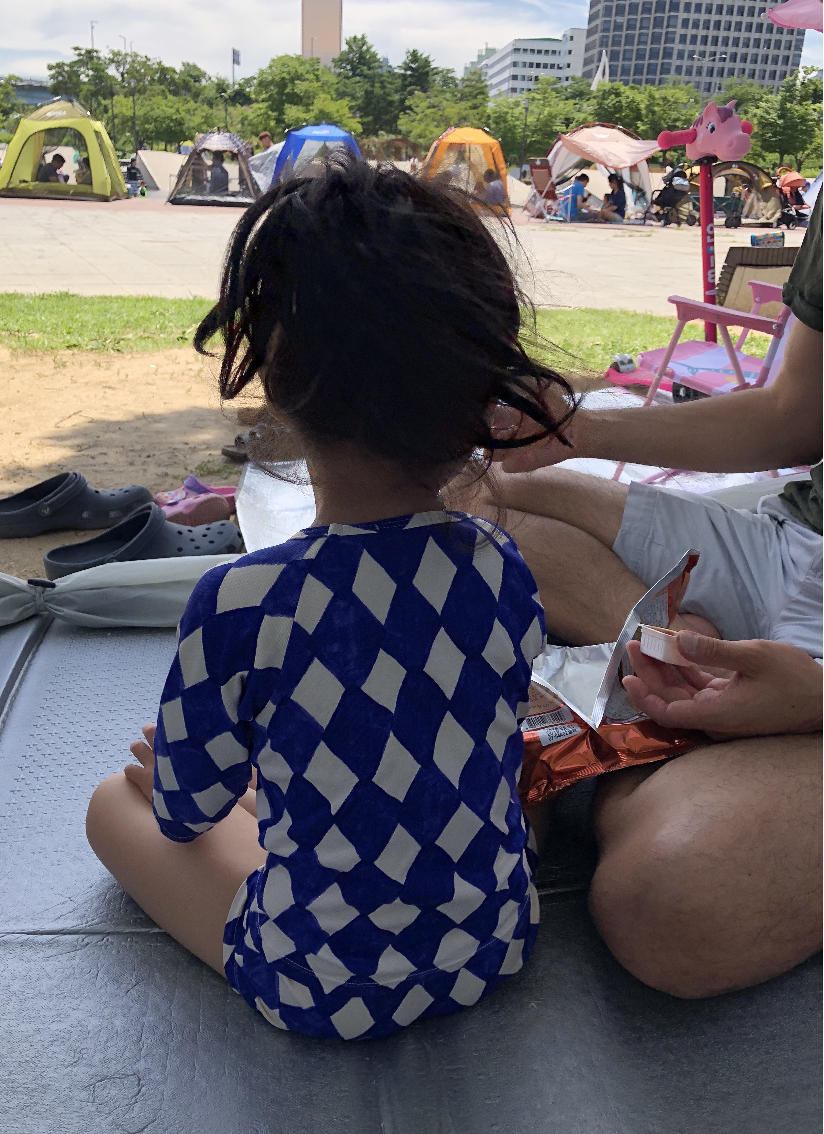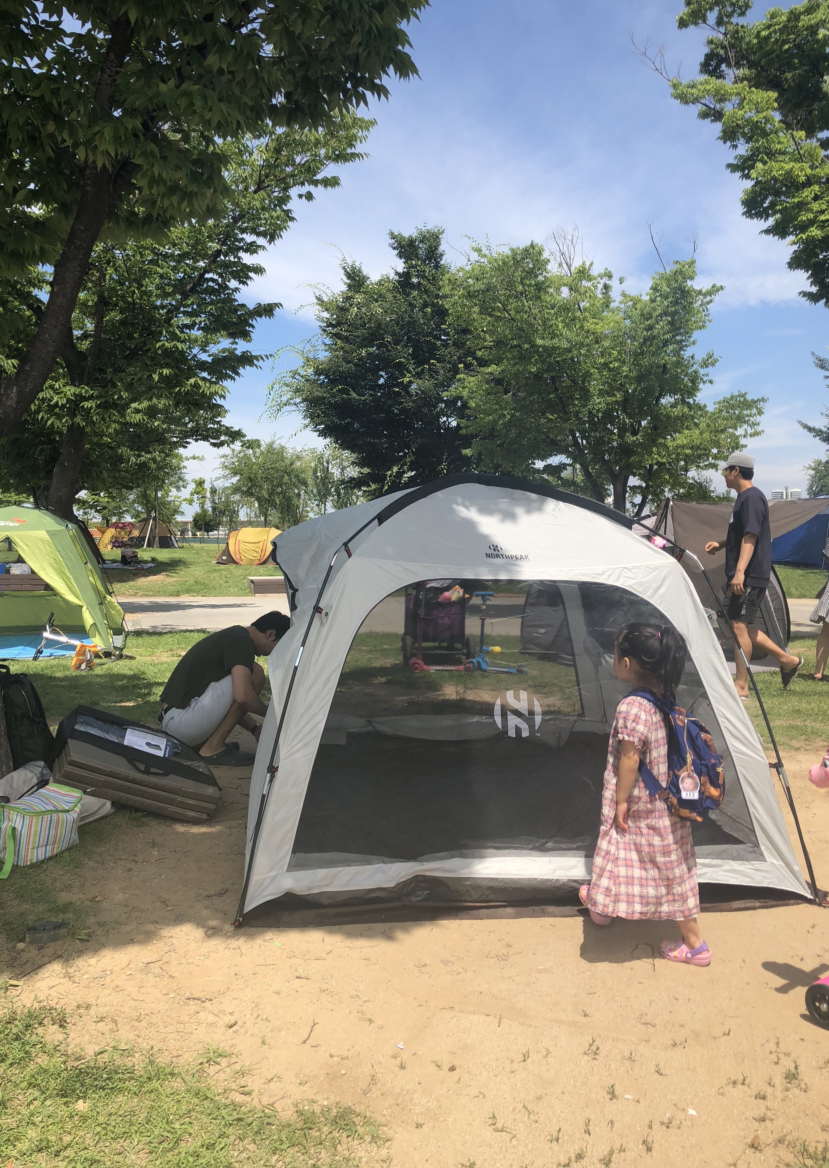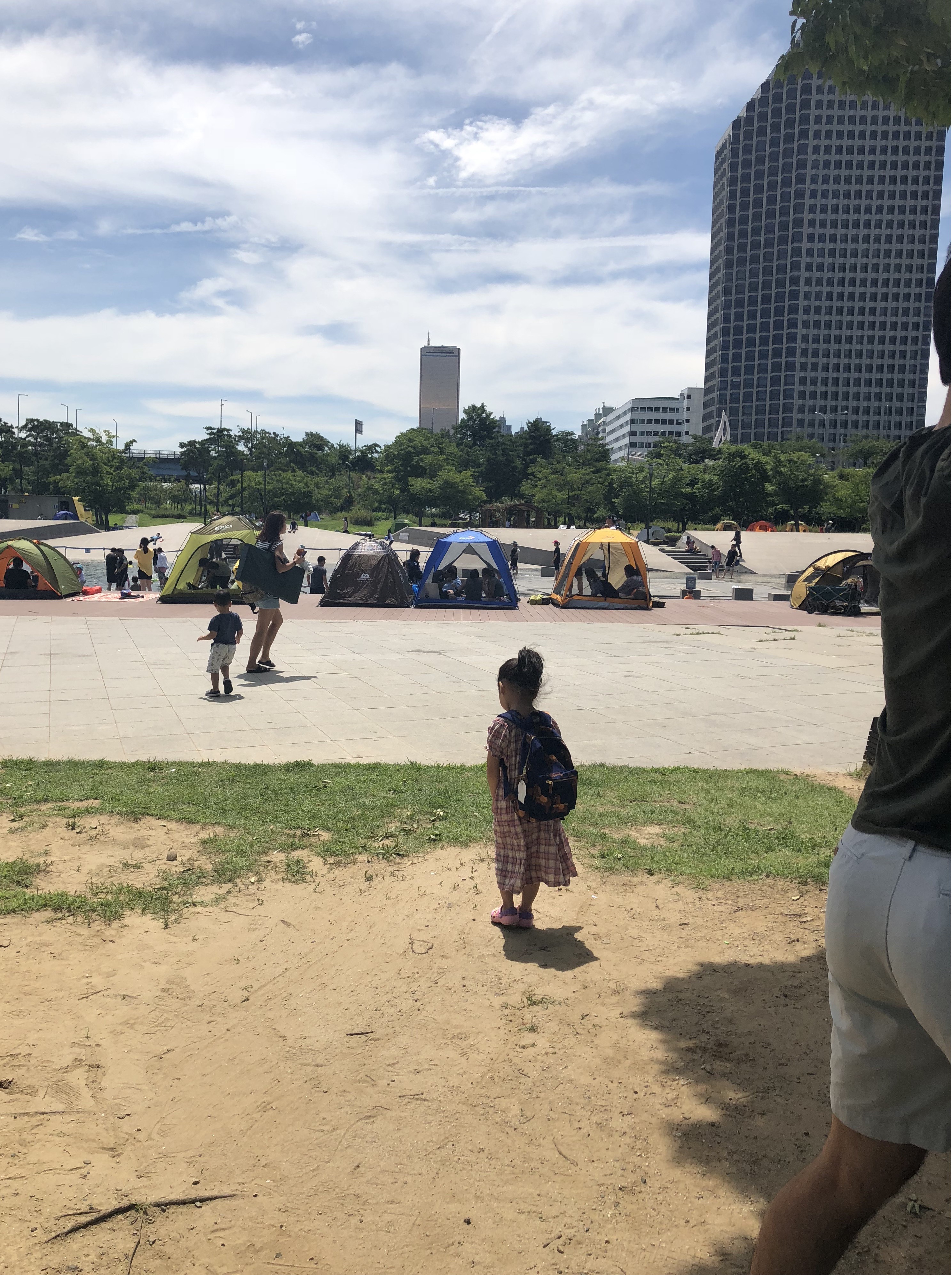 아이와 함께 그늘막 칠 자리를 물색하다가,