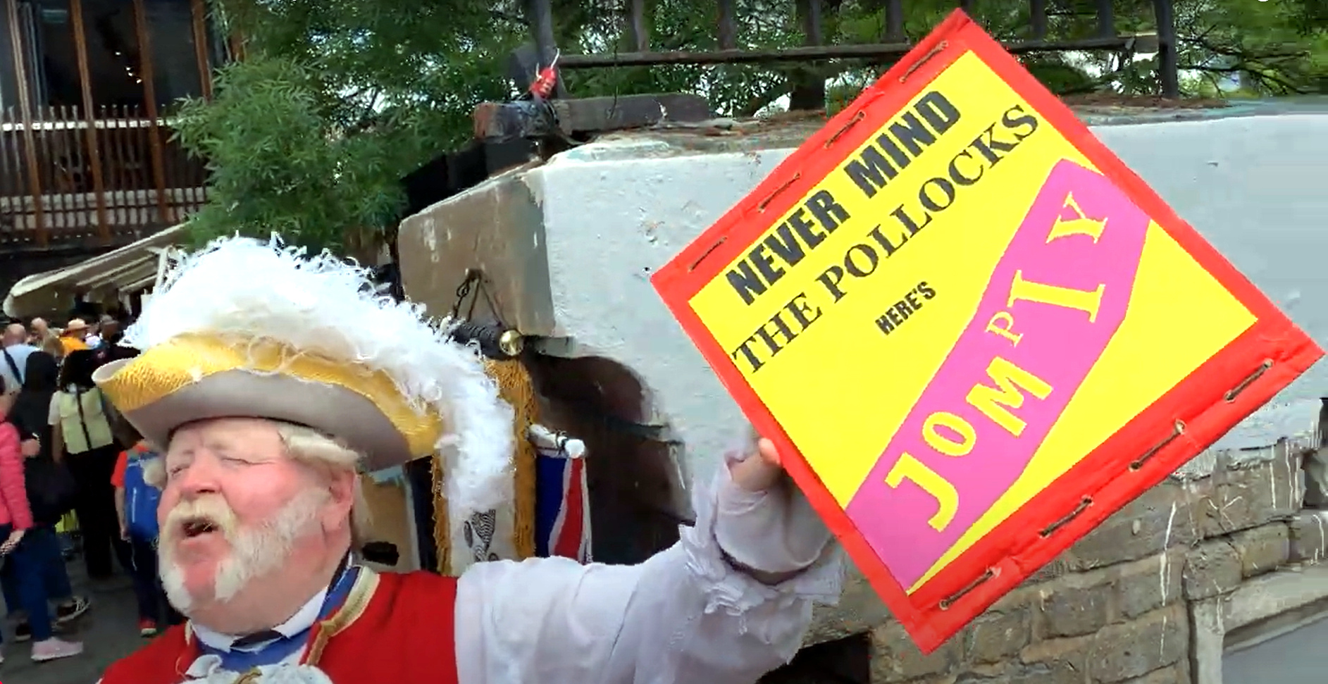 Also since my last post...Yesterday, the first 24 flag paintings were finished, processed and are now ready for Camden. Alan, the Camden Market Town crier, suggested I put up some paintings of flags around my Camden Market Free Art Man display saying, in each language, that if any passer by does a one minute video interview for my YouTube channel they qualify for a free artwork of their choice. Here's a photo of Alan promoting one of my Jompiy Series O artworks
