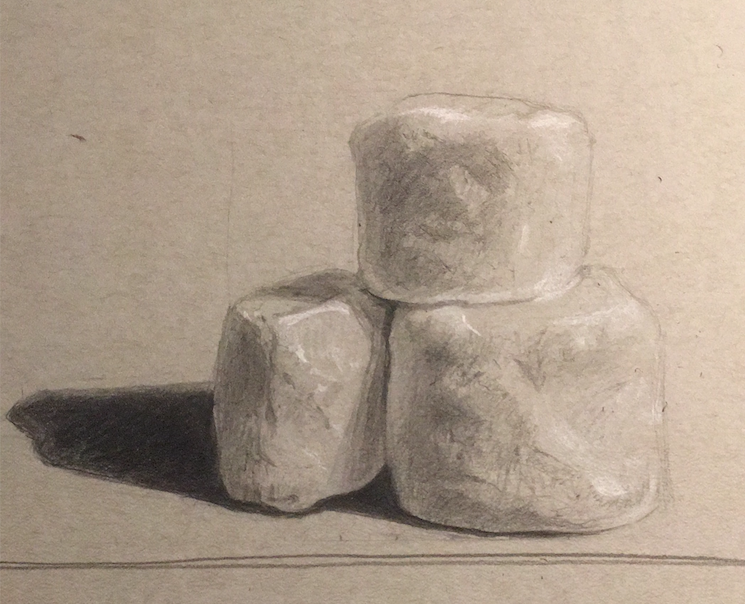marshmallow drawingsteemCreated with Sketch.kindo (50)in #art • 7 years ago (edited) on canson tone paper. HB and 4B pencils for the midtone and shadows. white pencil for the highlights the third one down is my favorite image in the process, it's ok though, it's a learning process. ^__^' #artzone #creativecoin #photography #life