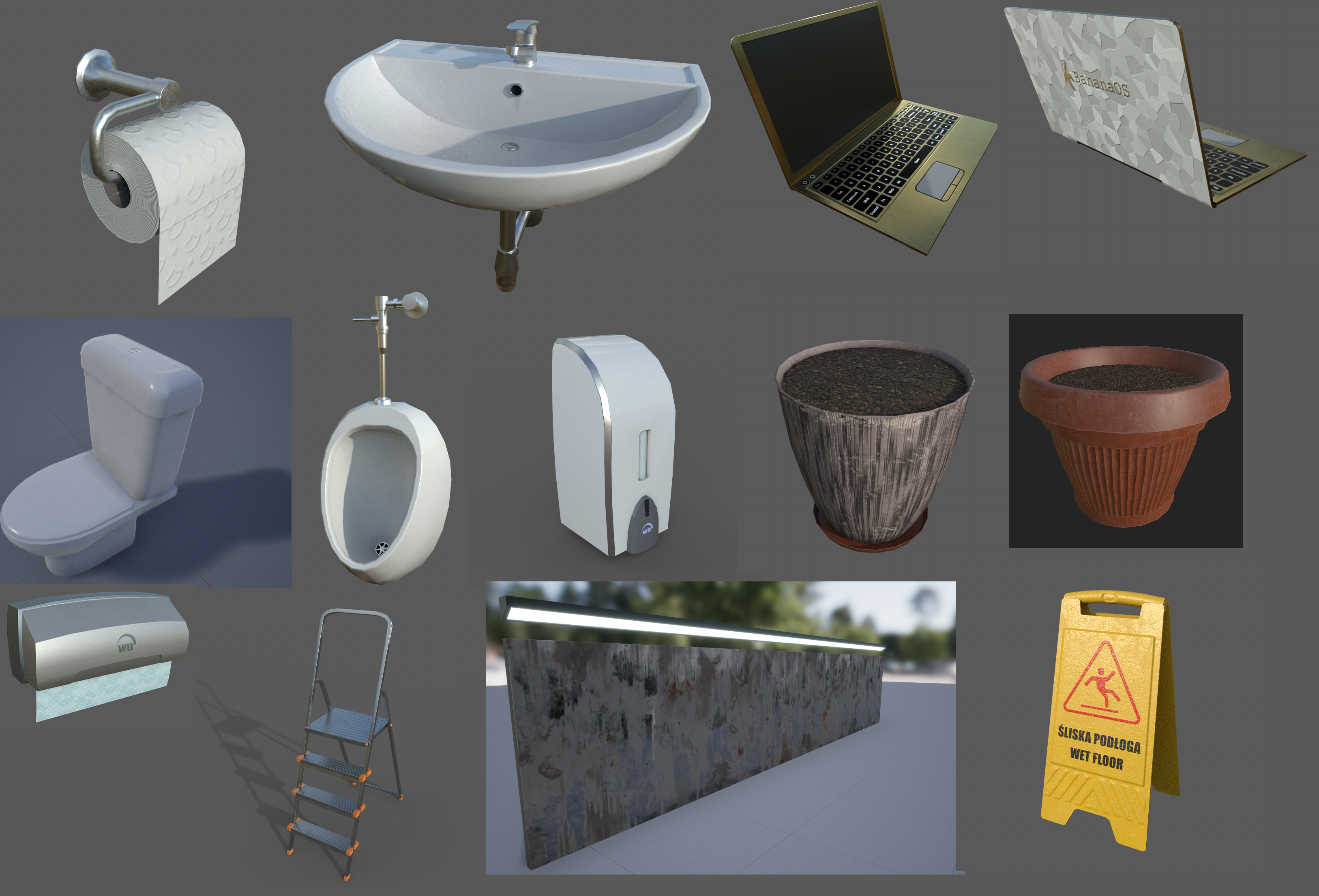 Here are some environmental objects that I've created. Most of them being toilet props, but there are some other props too.