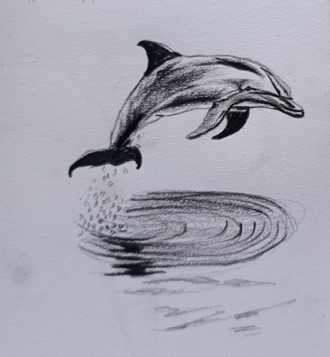 Dolphinkradu (46)in #art • 6 months ago Here's my latest drawing, a dolphin captured in mid-leep, expression pure freedom and joy. I love how the pencil strokes bring out the motion and energy in this moment, while the ripples beneath show the beauty of calm after movement. Process #blog #krsuccess #creativity #photography