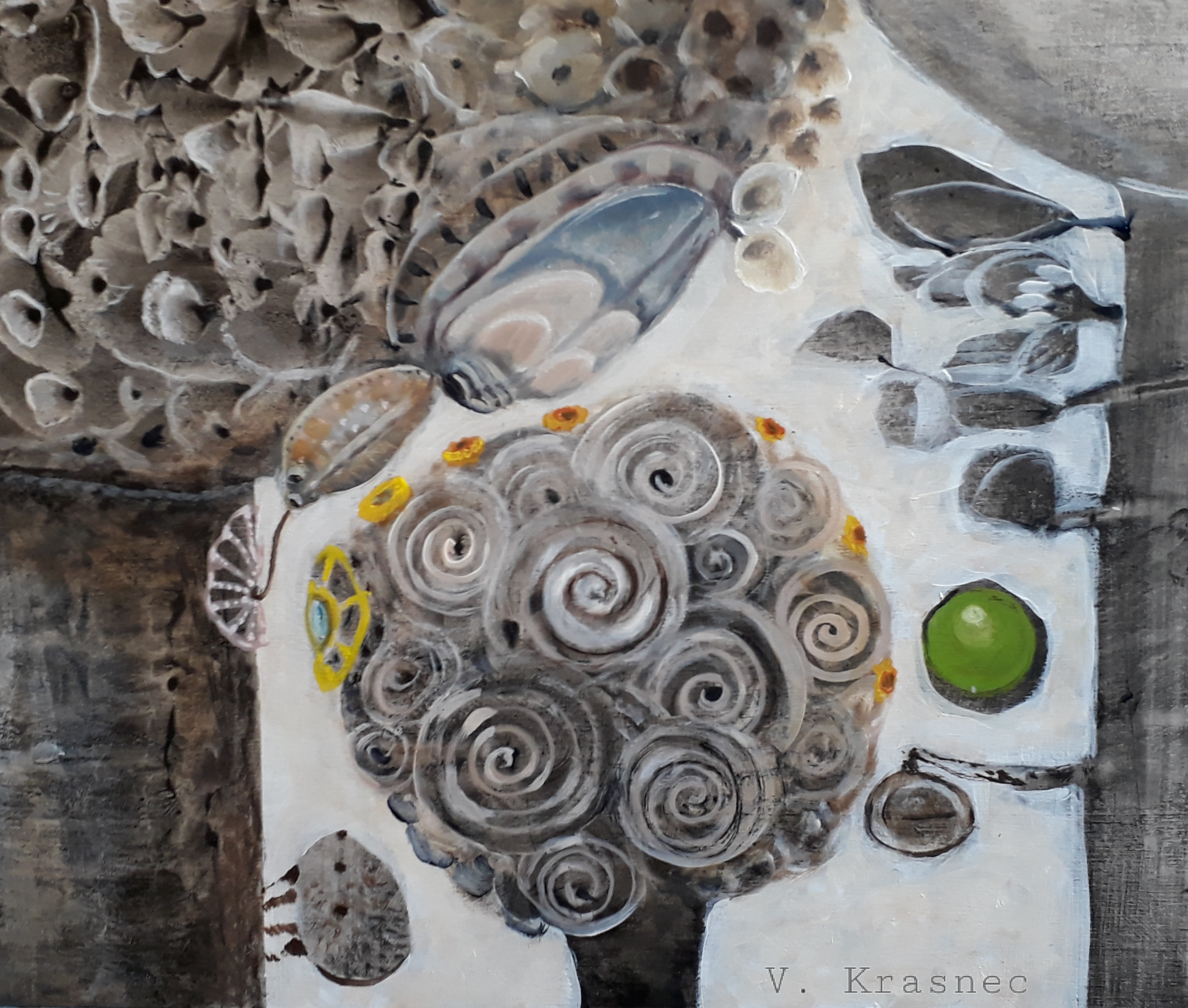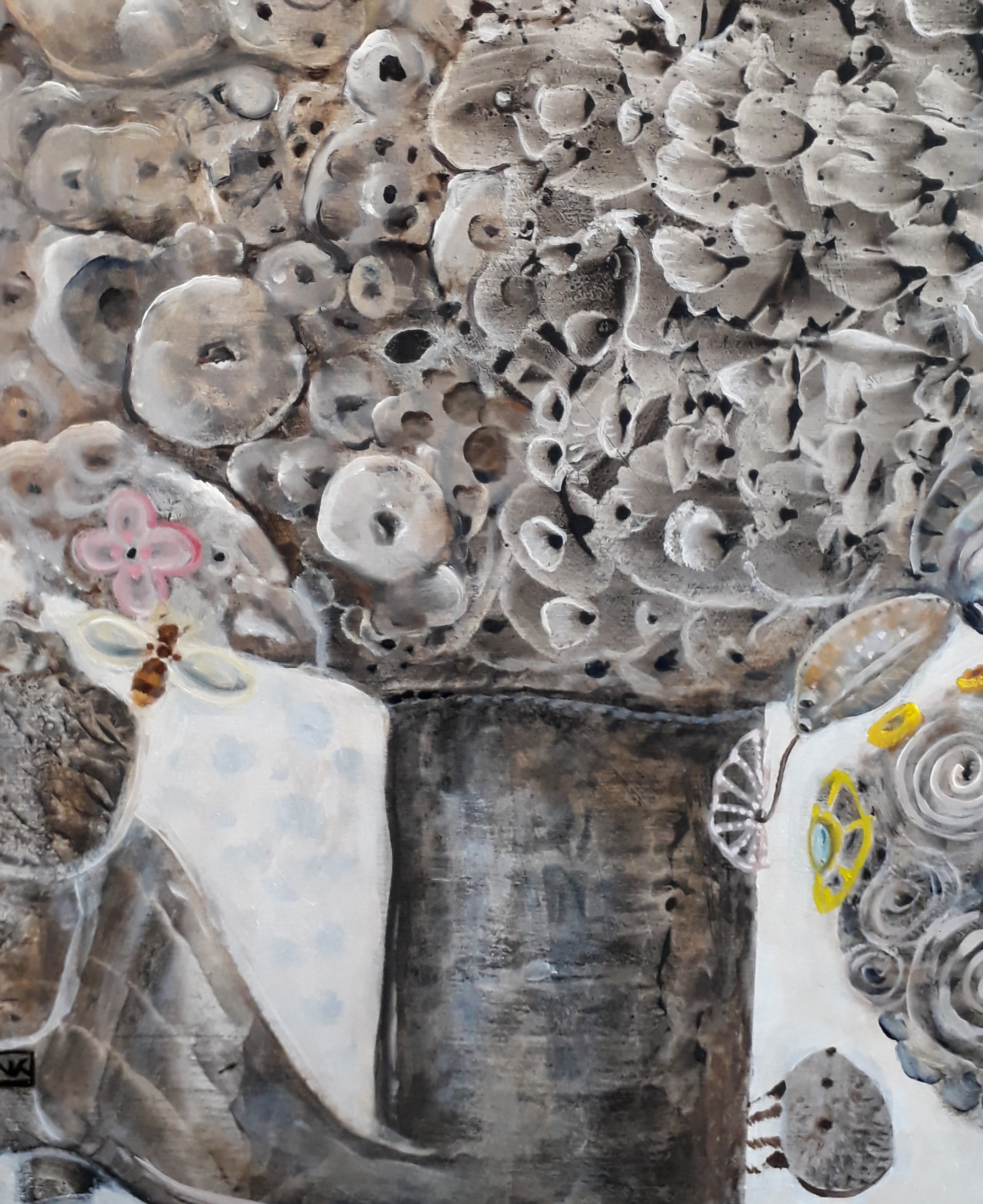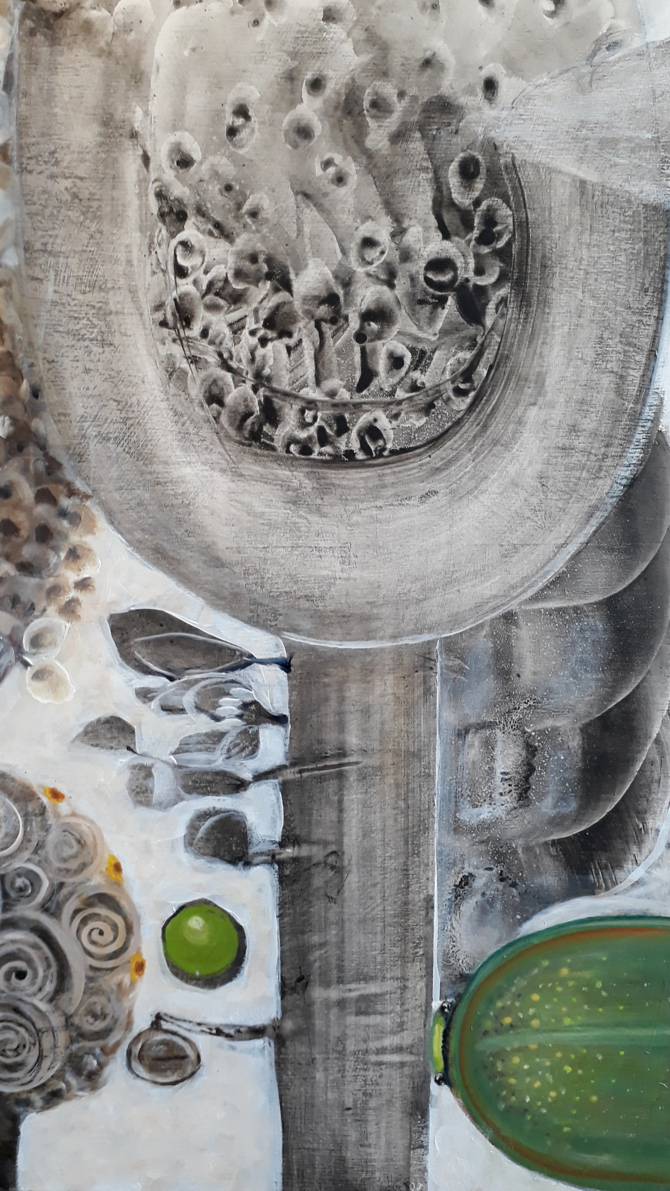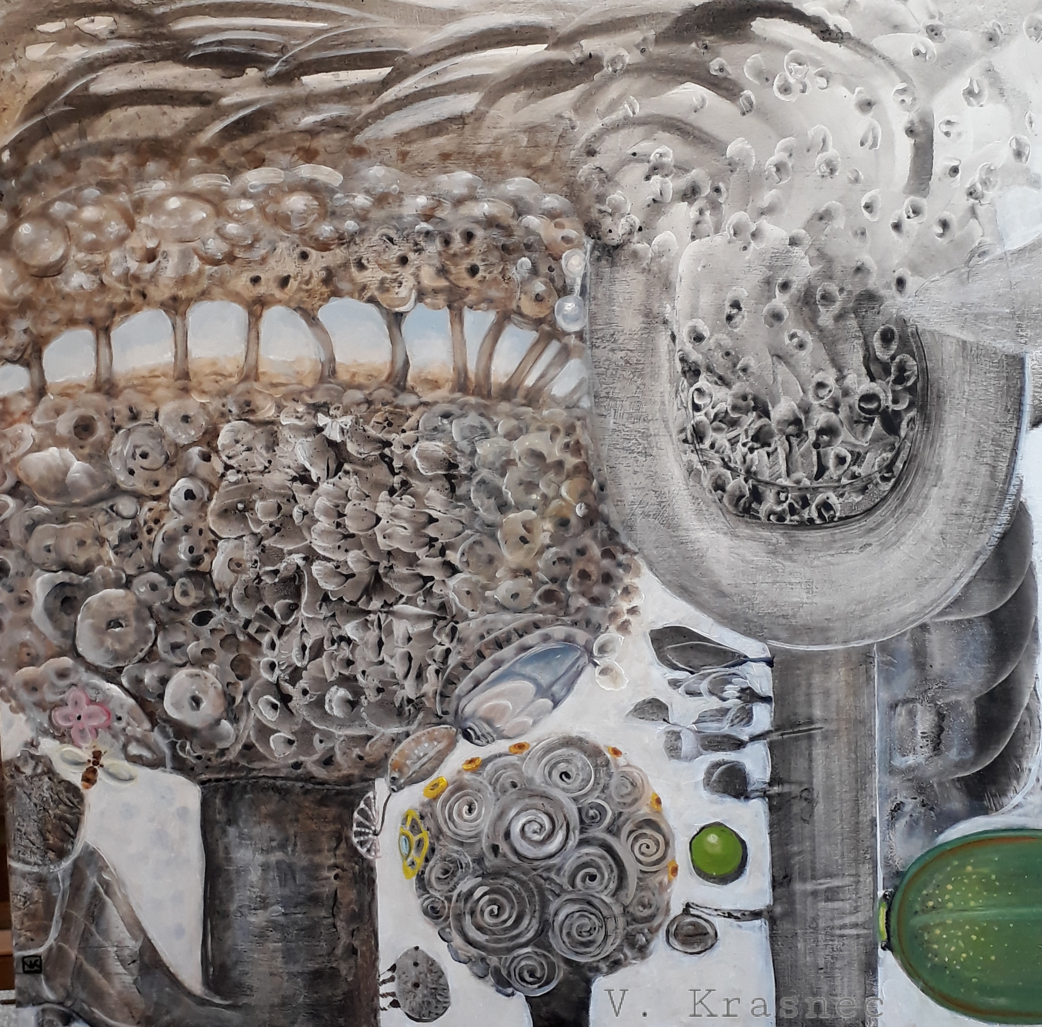 Interesting work! I haven't seen anything like it before. Having hints of color in a mostly neutral piece isn't the easiest thing to pull off but, you seem to have done it and maintained balance within the composition. Thanks for sharing and having the most unique work I have seen today. Upvoted and resteemed!